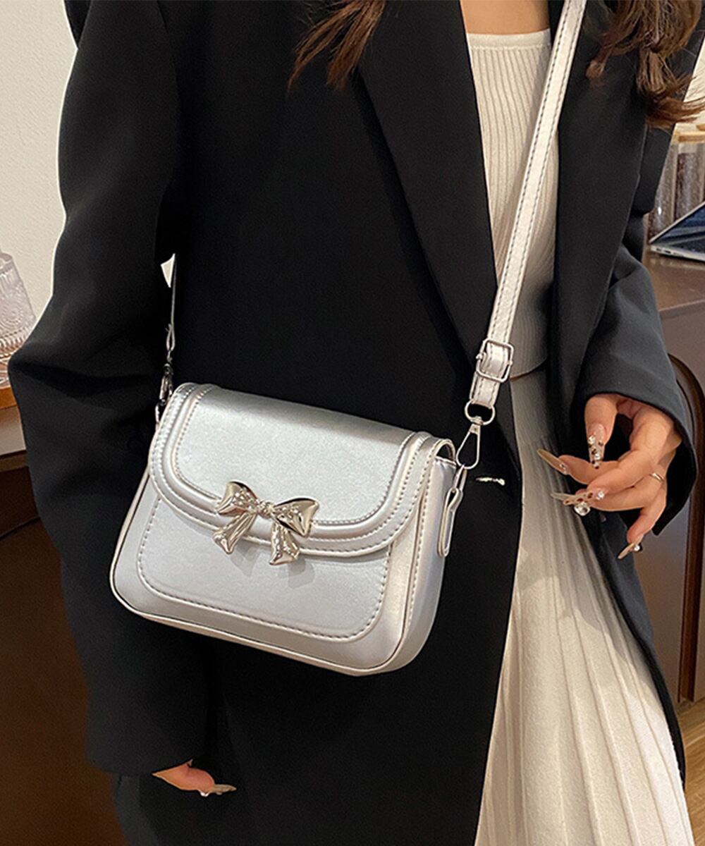 シルバーリボンがアクセントになった上品なミニショルダーバッグ