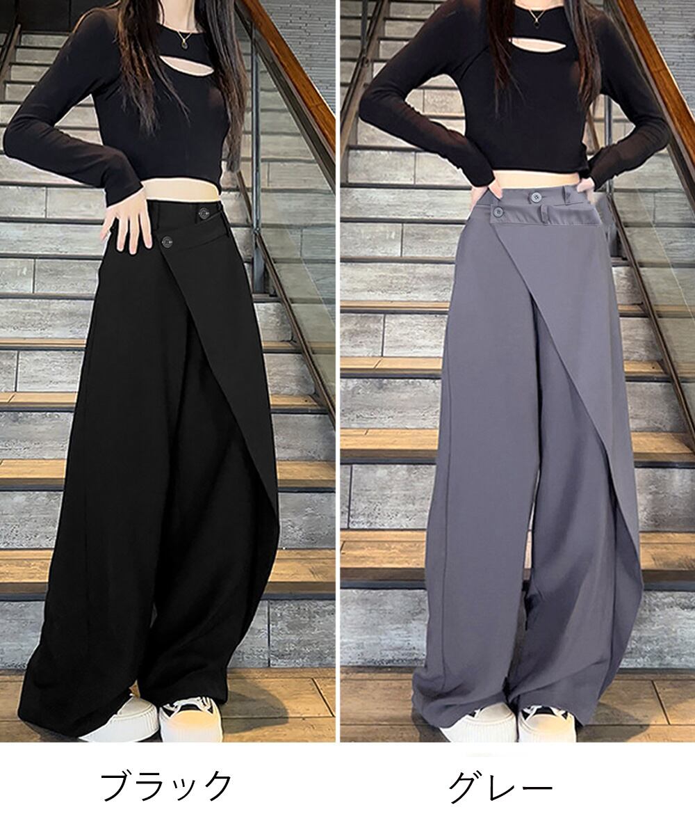 イレギュラー ハイウエスト ワイドパンツ オフィスカジュアル ストレートパンツ 非対称 美脚脚長 ロングパンツ 通勤OL