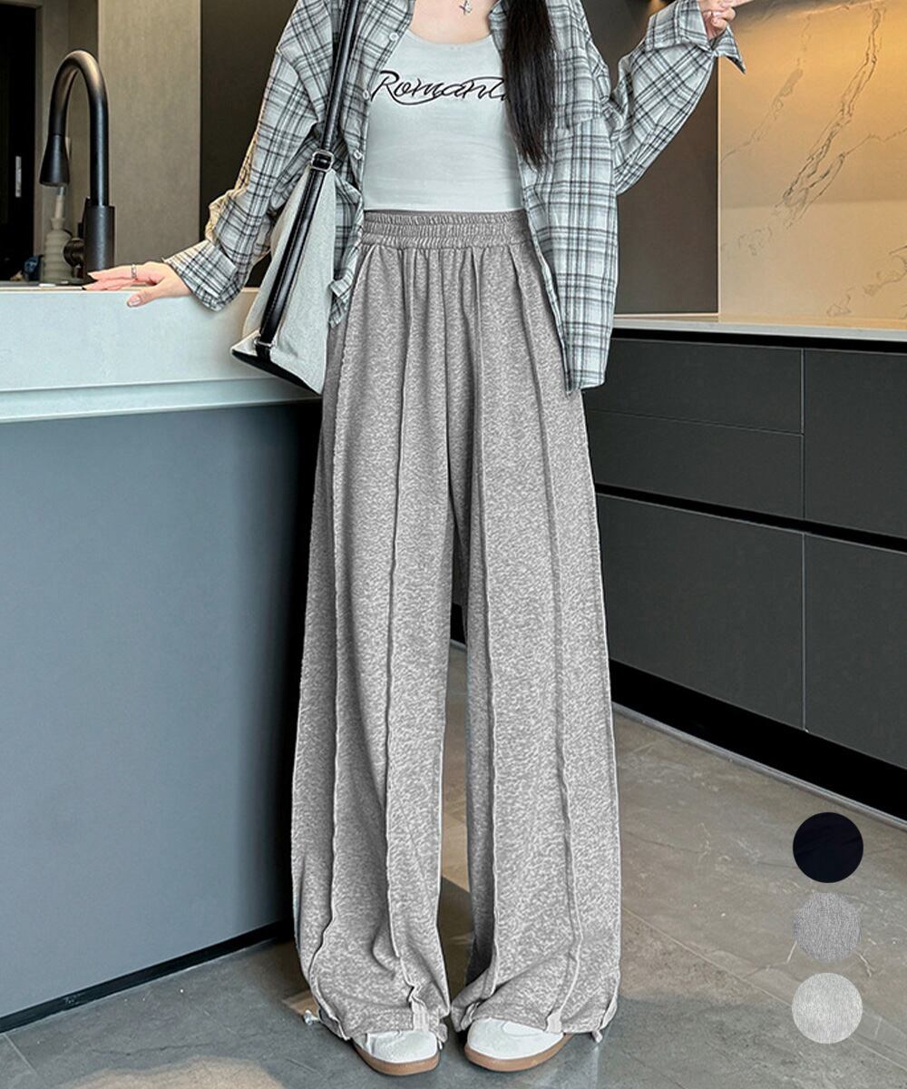 フロントラインデザインとゆったりとしたシルエットが魅力のスウェットワイドパンツ