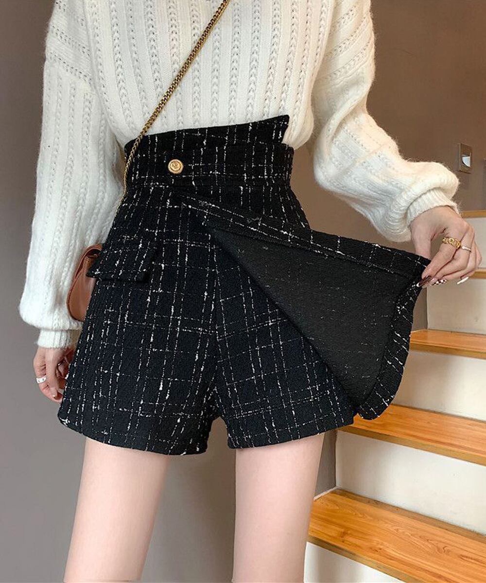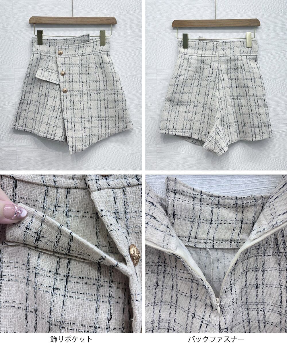 ツイードショートパンツ ラップスカート風