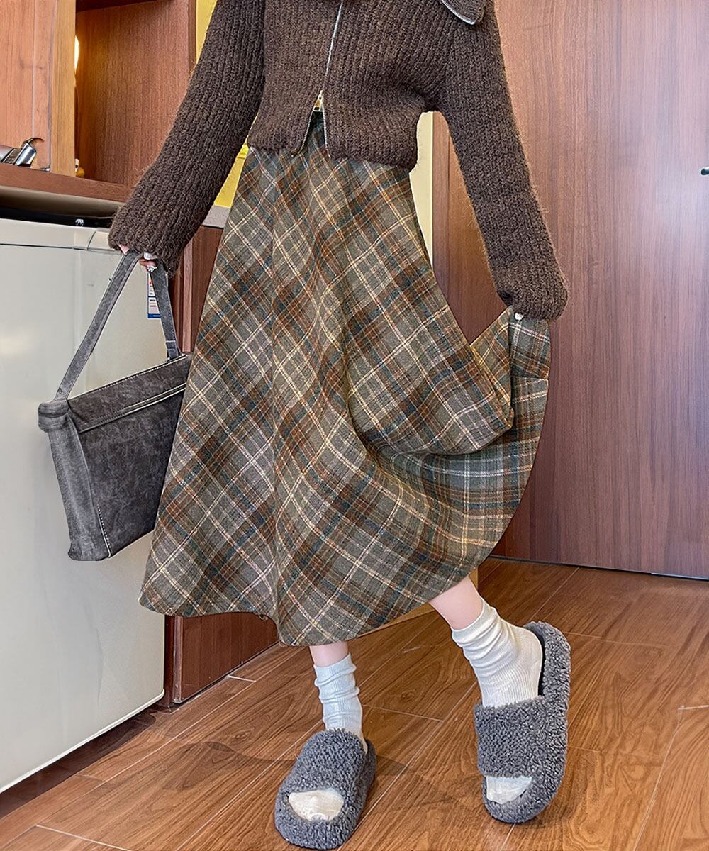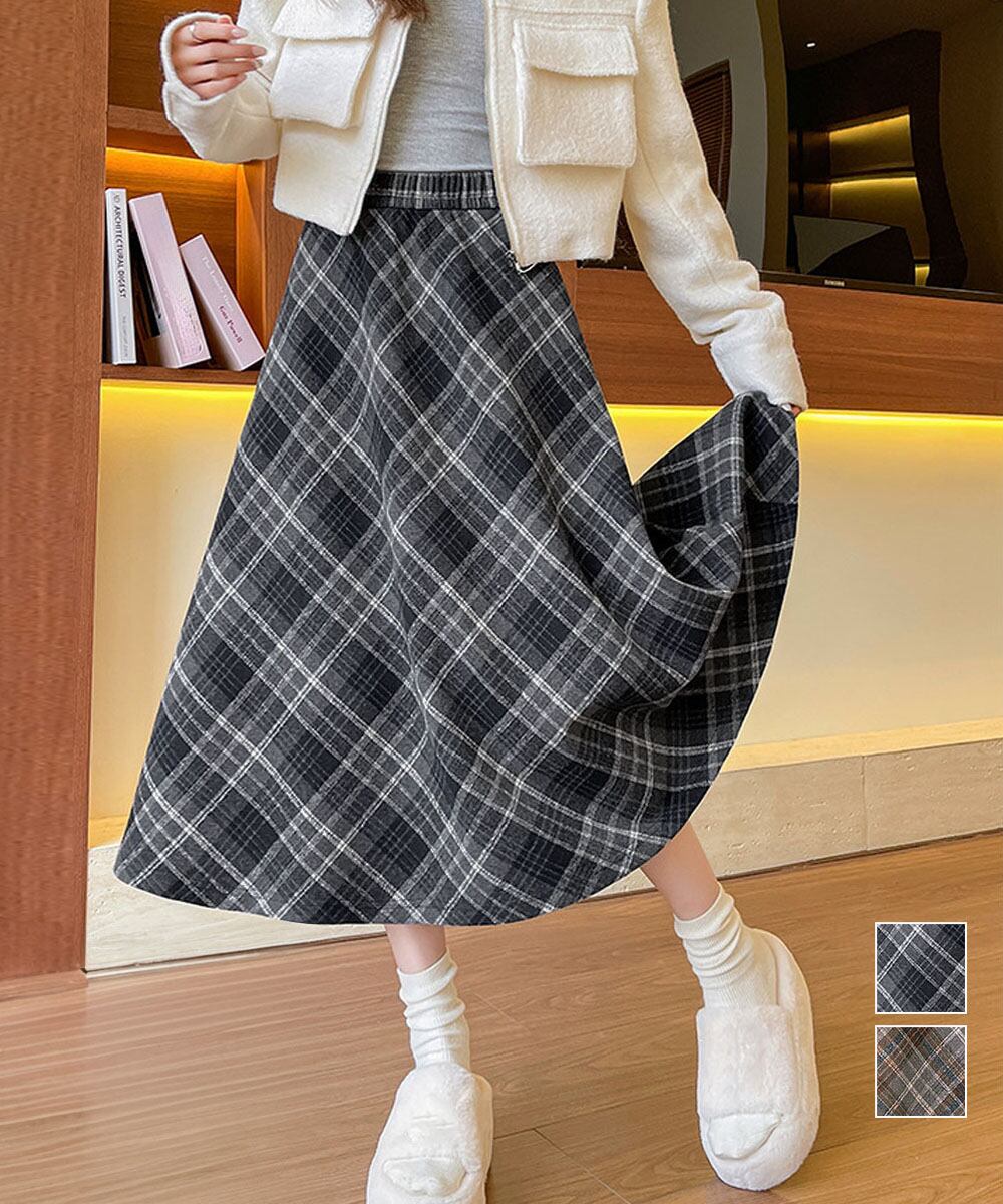 フレアスカート チェック柄 美脚 春秋冬