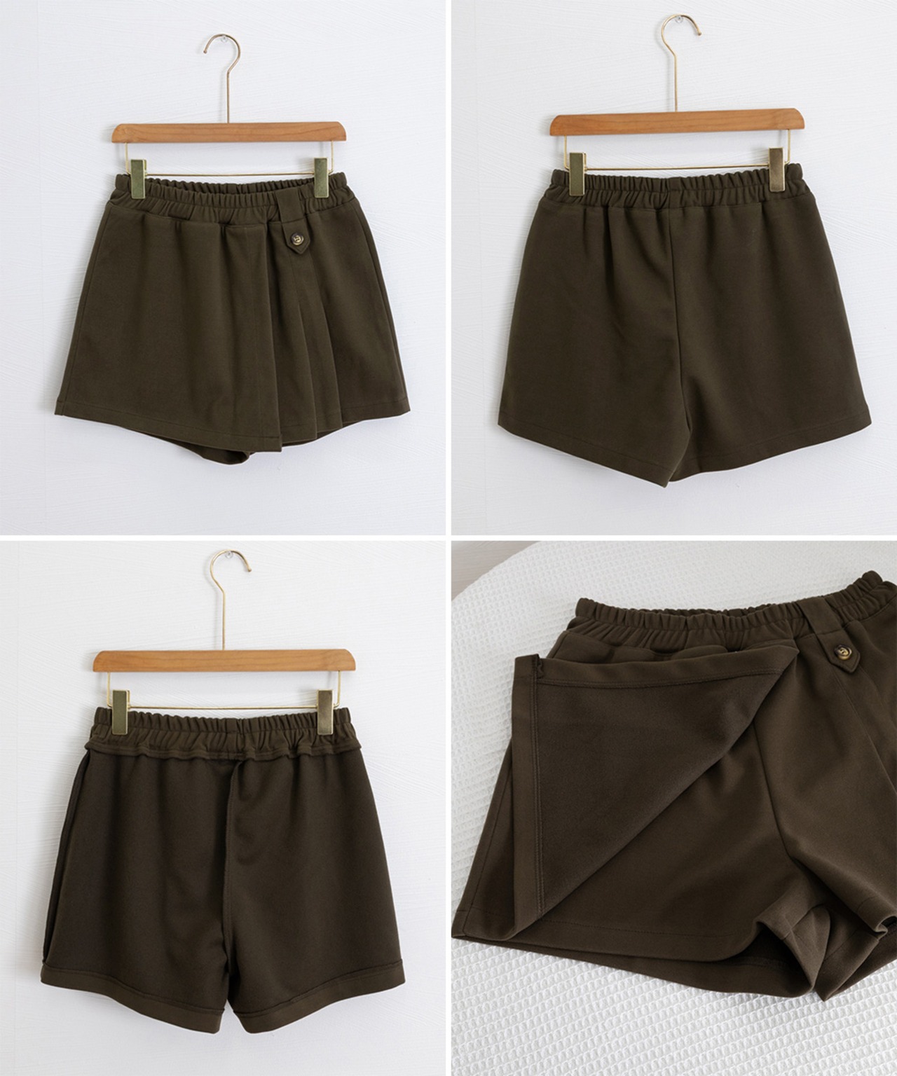 一見スカートのようなアシンメトリーデザインで、女性らしいシルエットを演出しつつ、パンツ仕様で動きやすい。