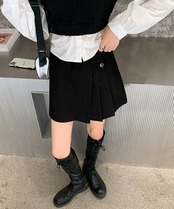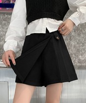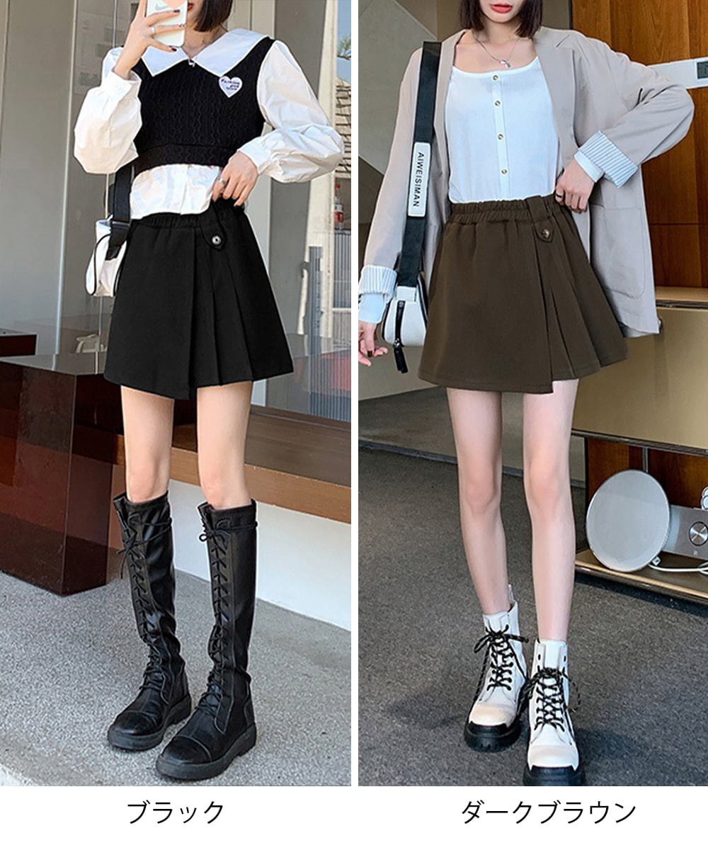 パンツ風スカート黒 おしゃれ台形パンツ アシンメトリー無地