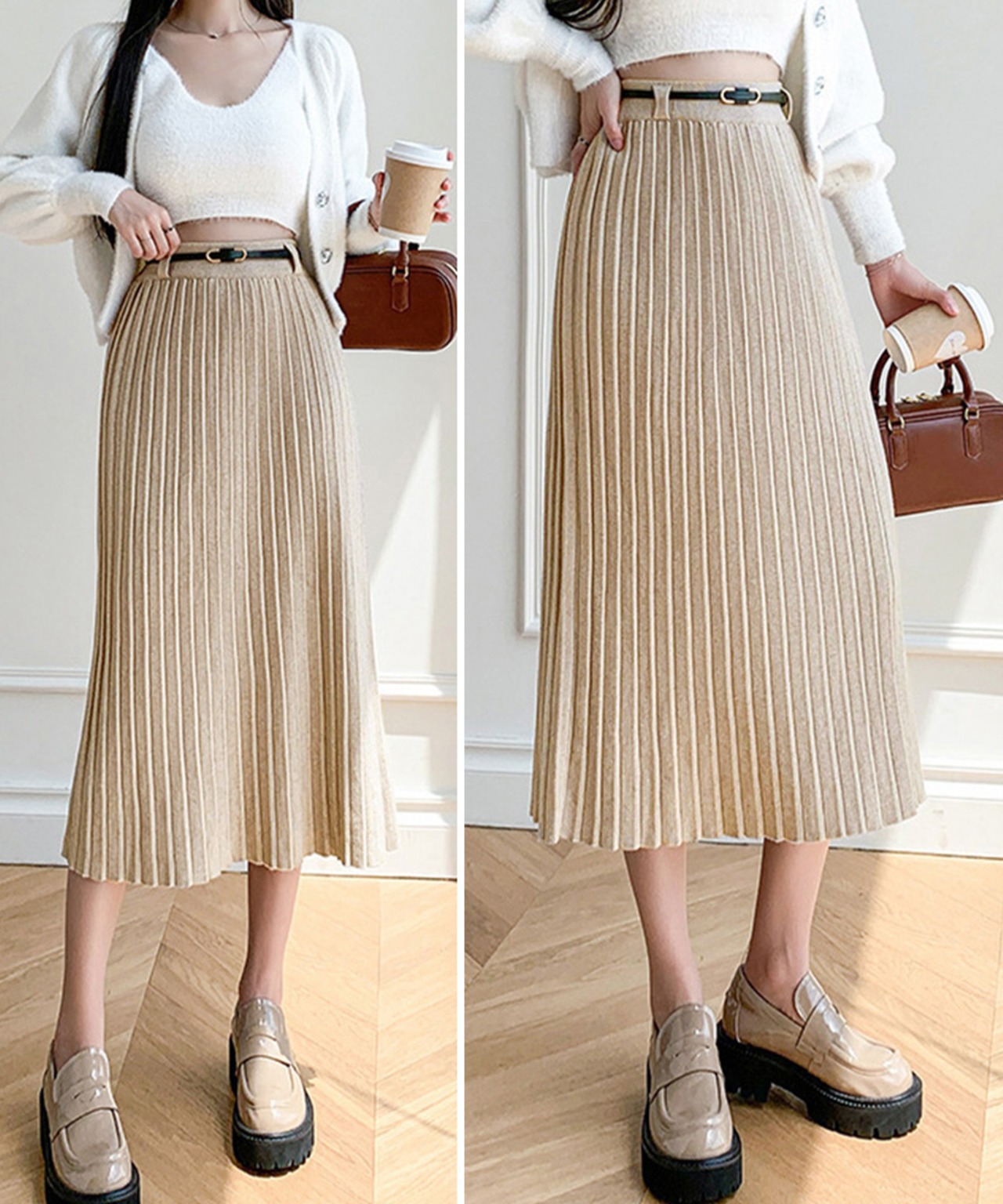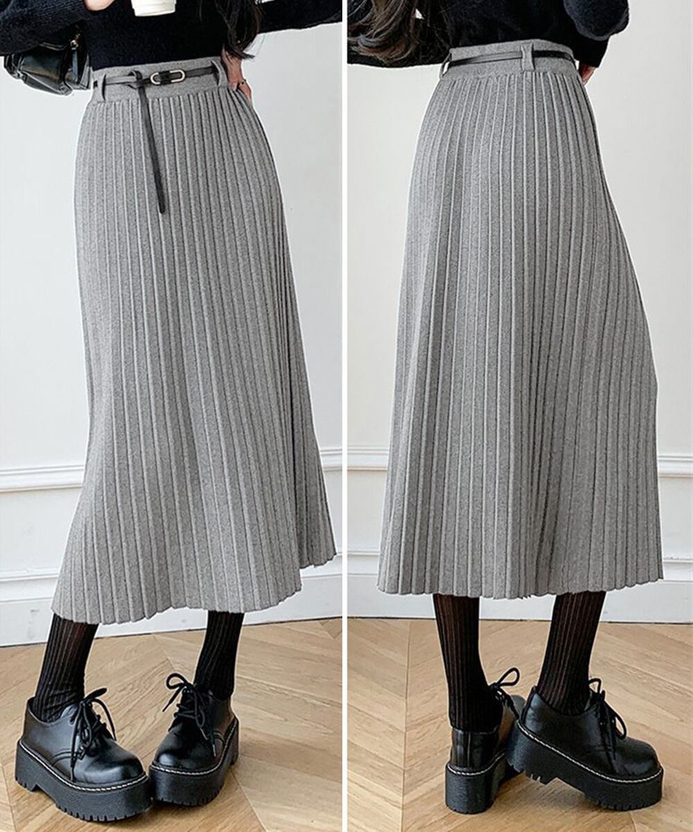 ハイウエスト プリーツニットスカート秋冬