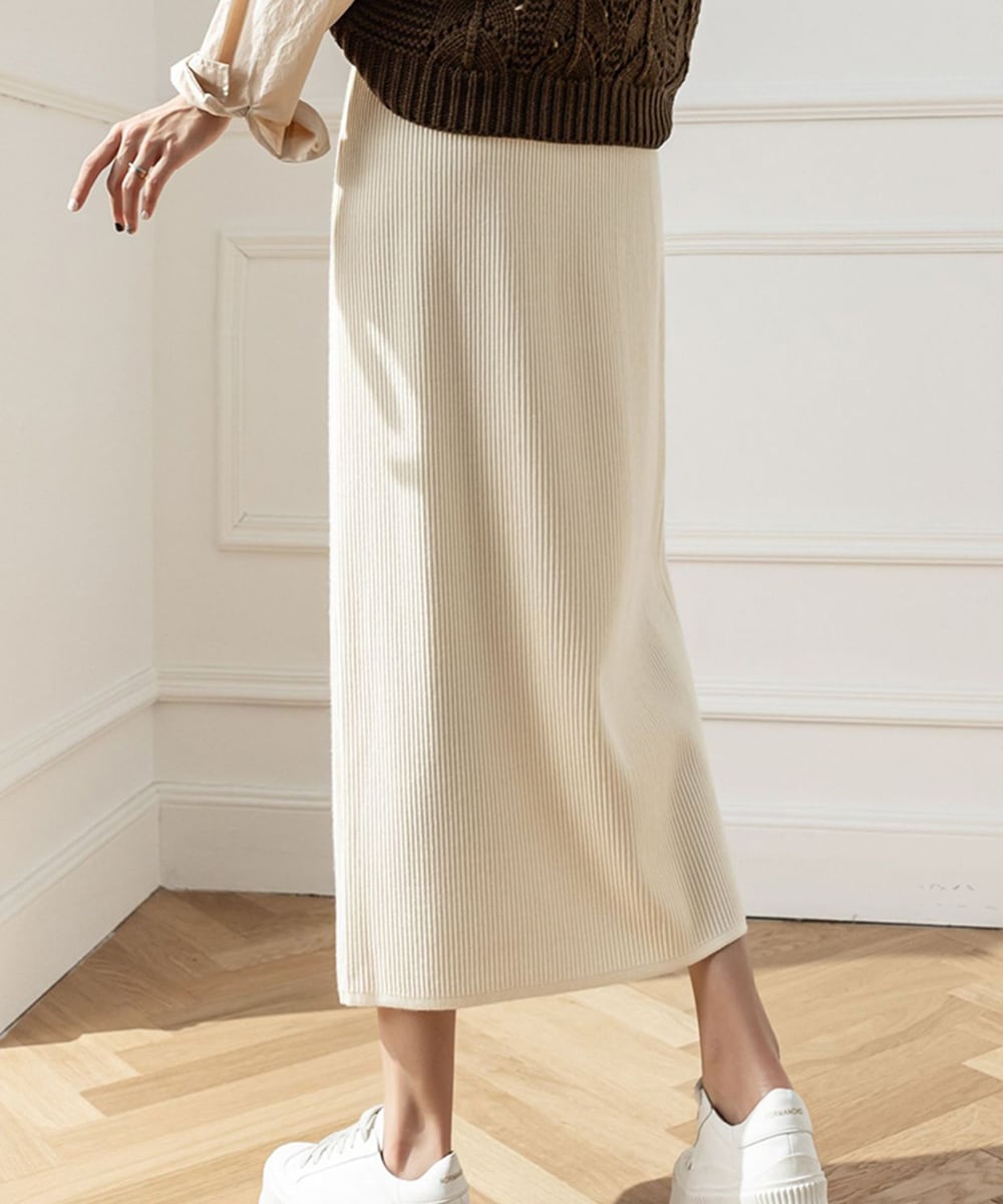 やわらかな風合いのリブニットで仕立てたロングスカート。