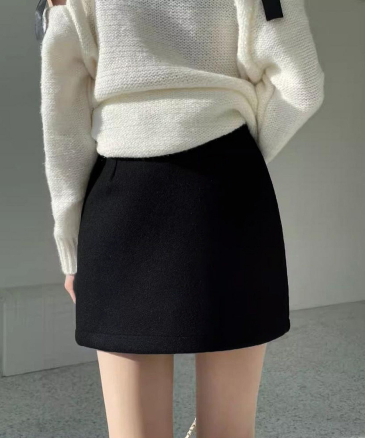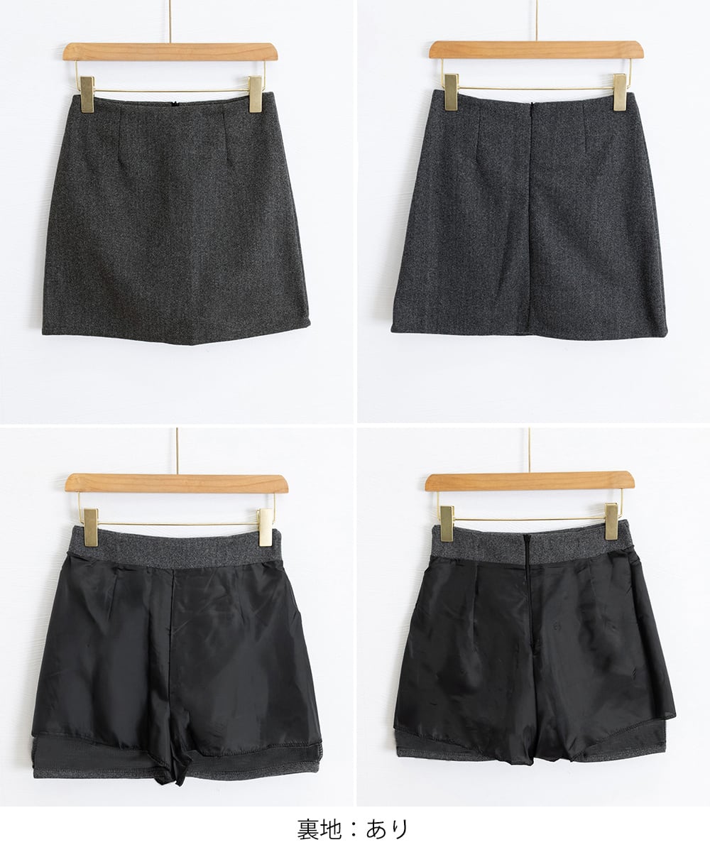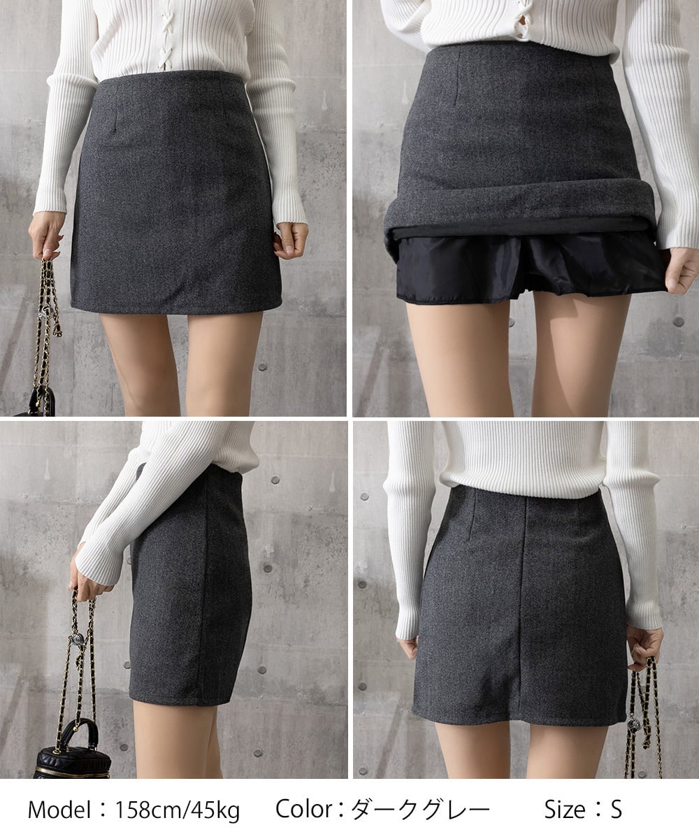 秋冬ムードたっぷりのウールライク素材ミニスカート。