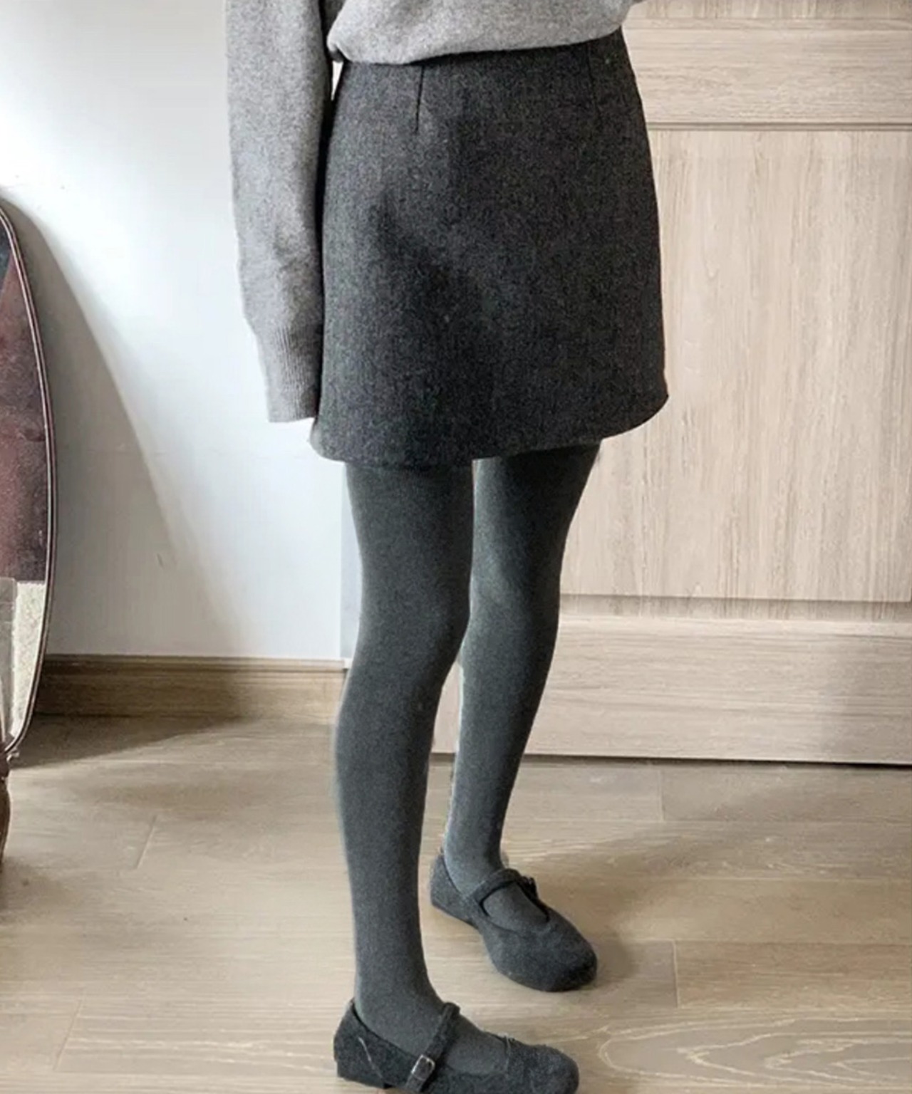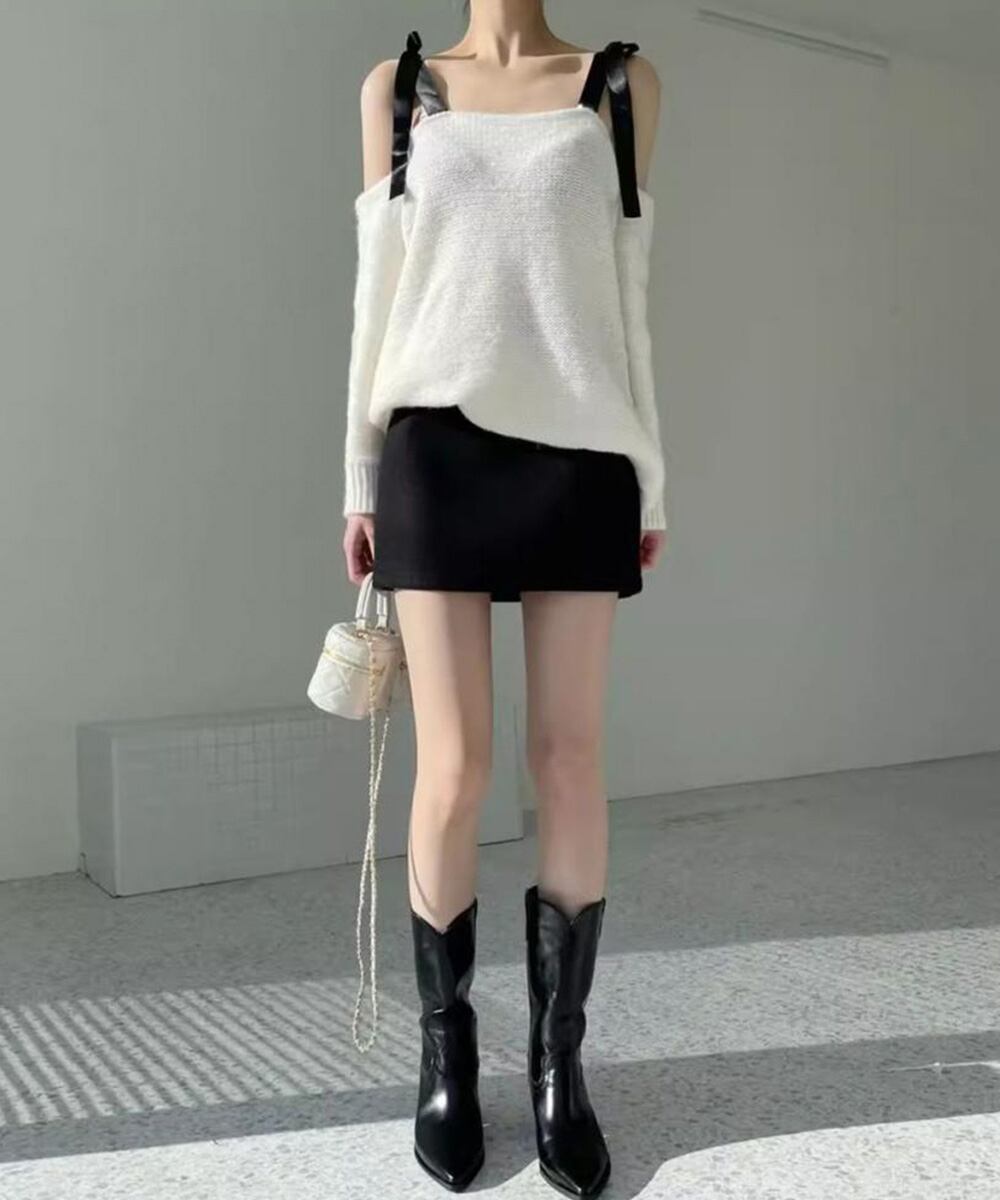 シャギーニットやロングブーツ、ルーズソックスとの相性も抜群。