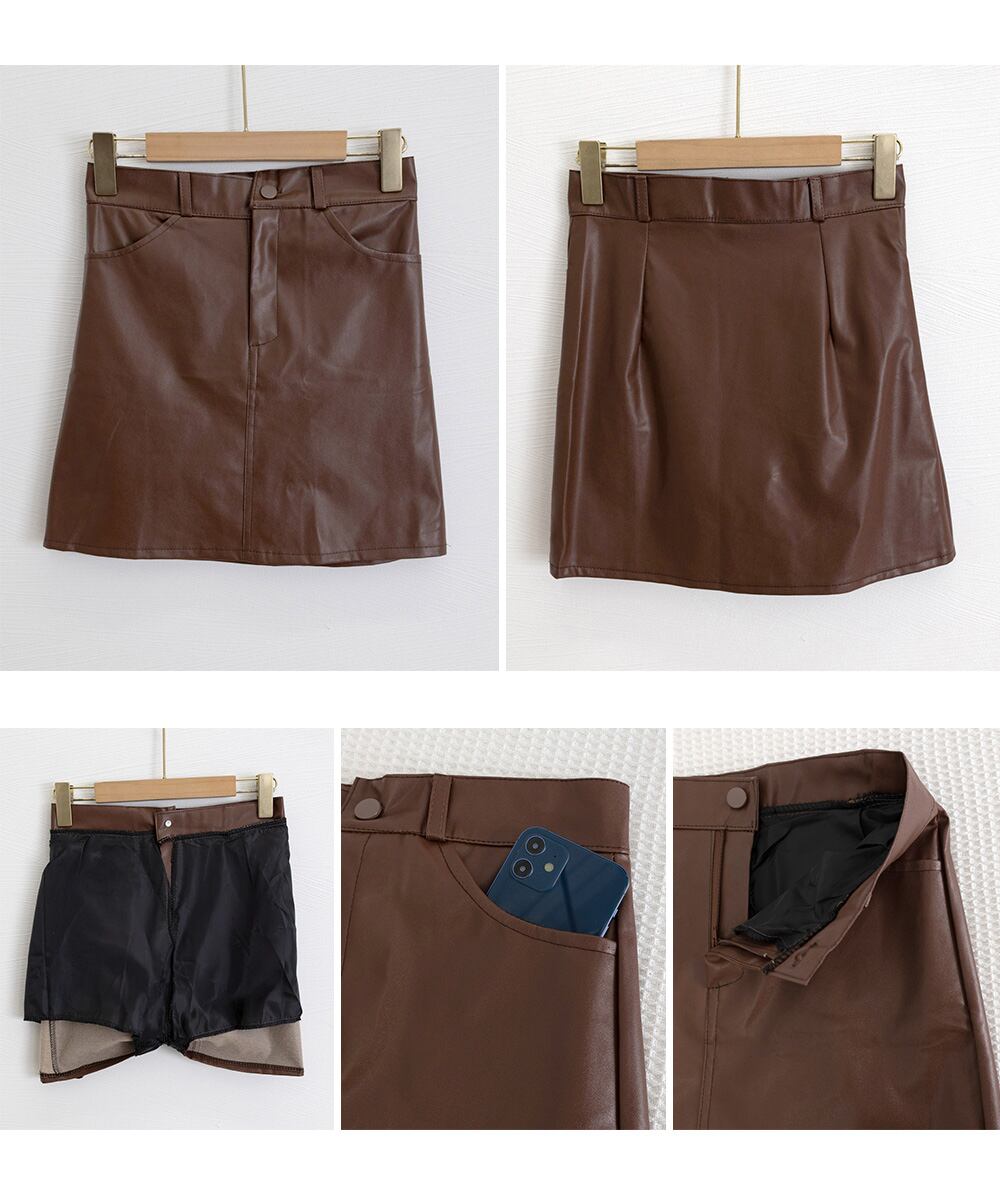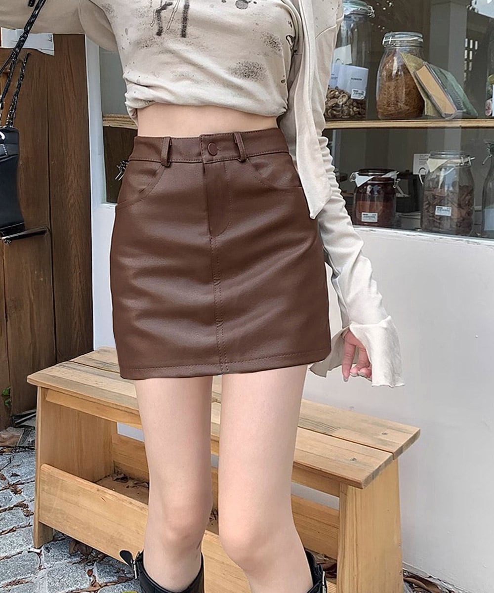 甘辛レザー風コンパクトなミニスカート。