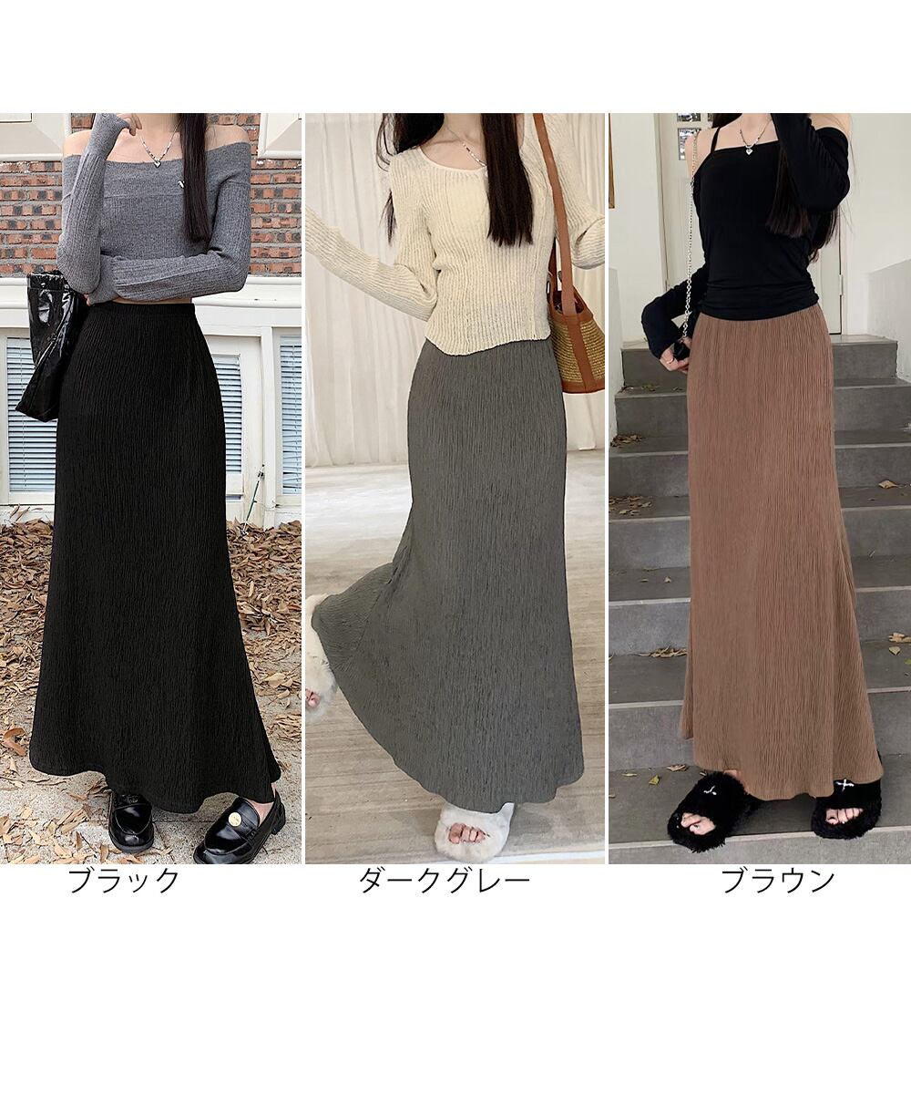 レディース シワ加工ロングスカート ウエストゴム Aラインスカート きれいめ 大人カジュアル フレアスカート 体型カバー