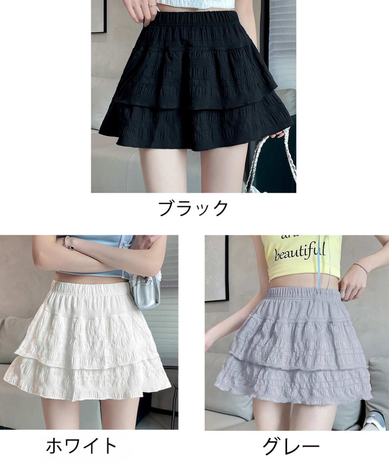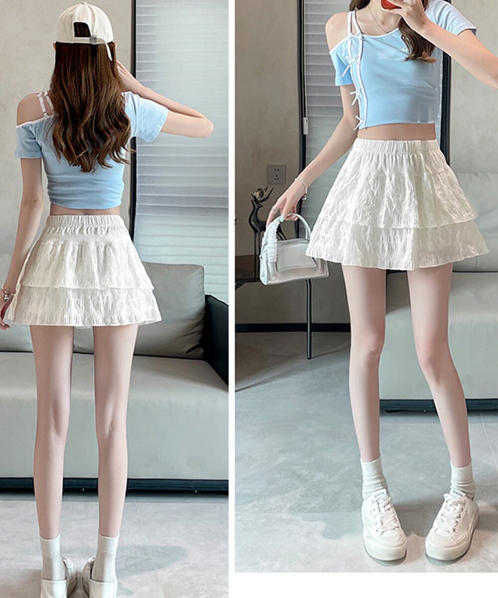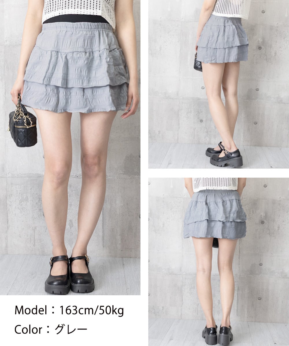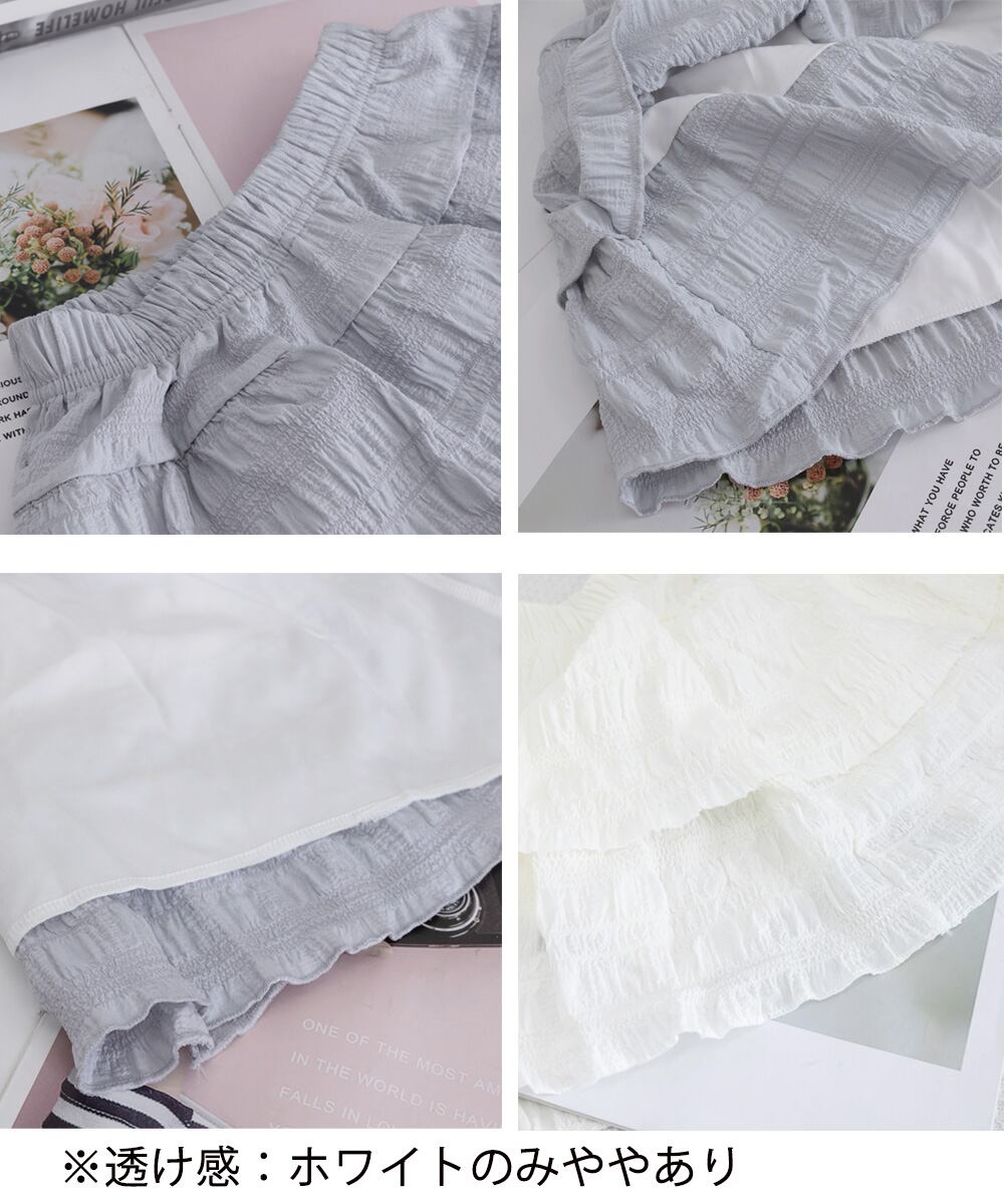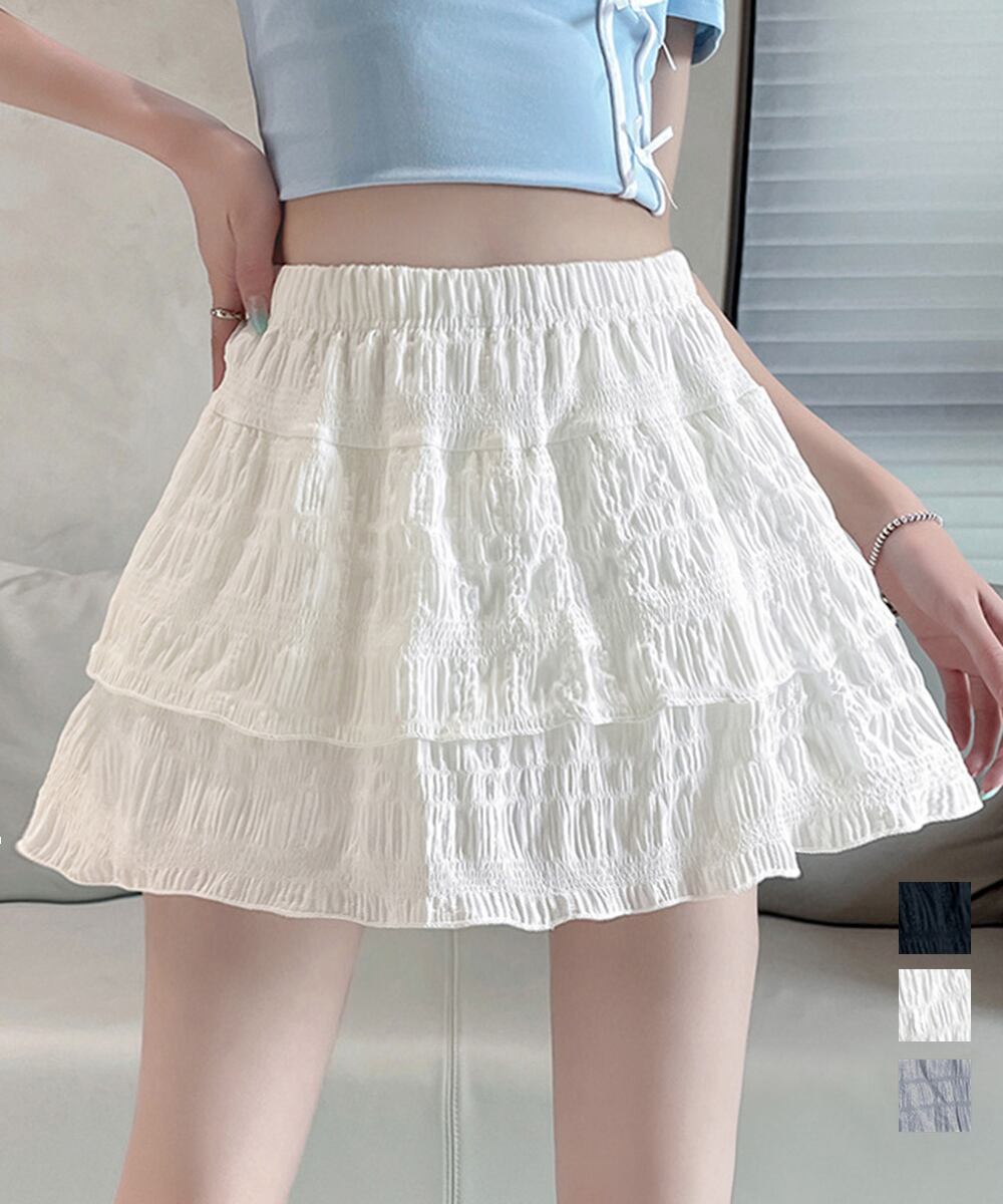 ティアードスカート インナーパンツ付き フリルスカート 着やせ チラ見え防止 ショート丈スカート ウエストゴム 可愛い