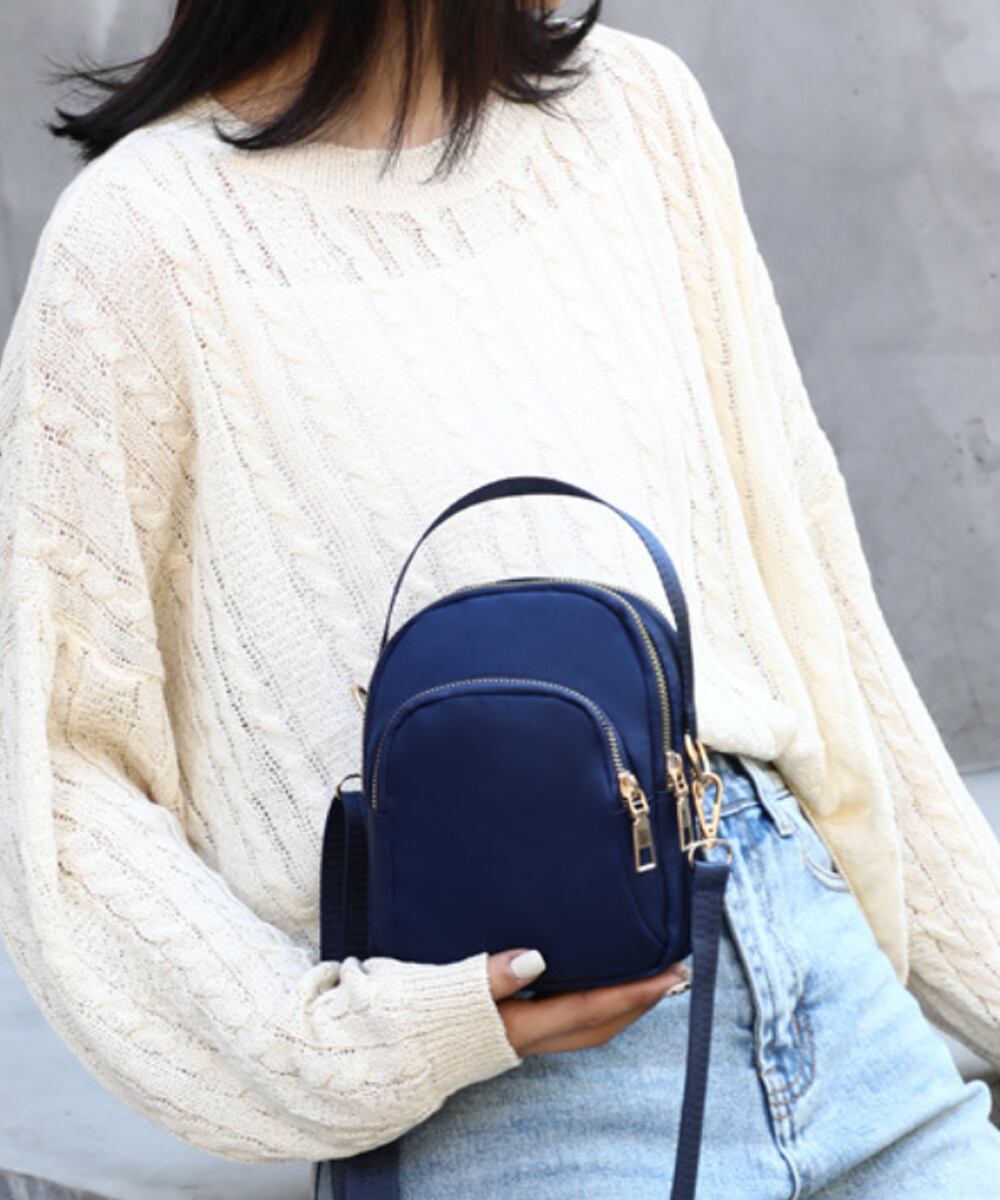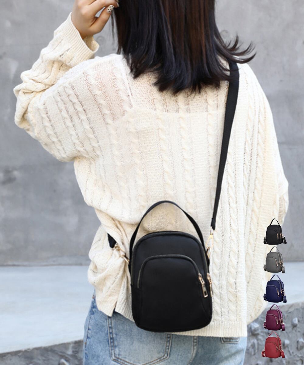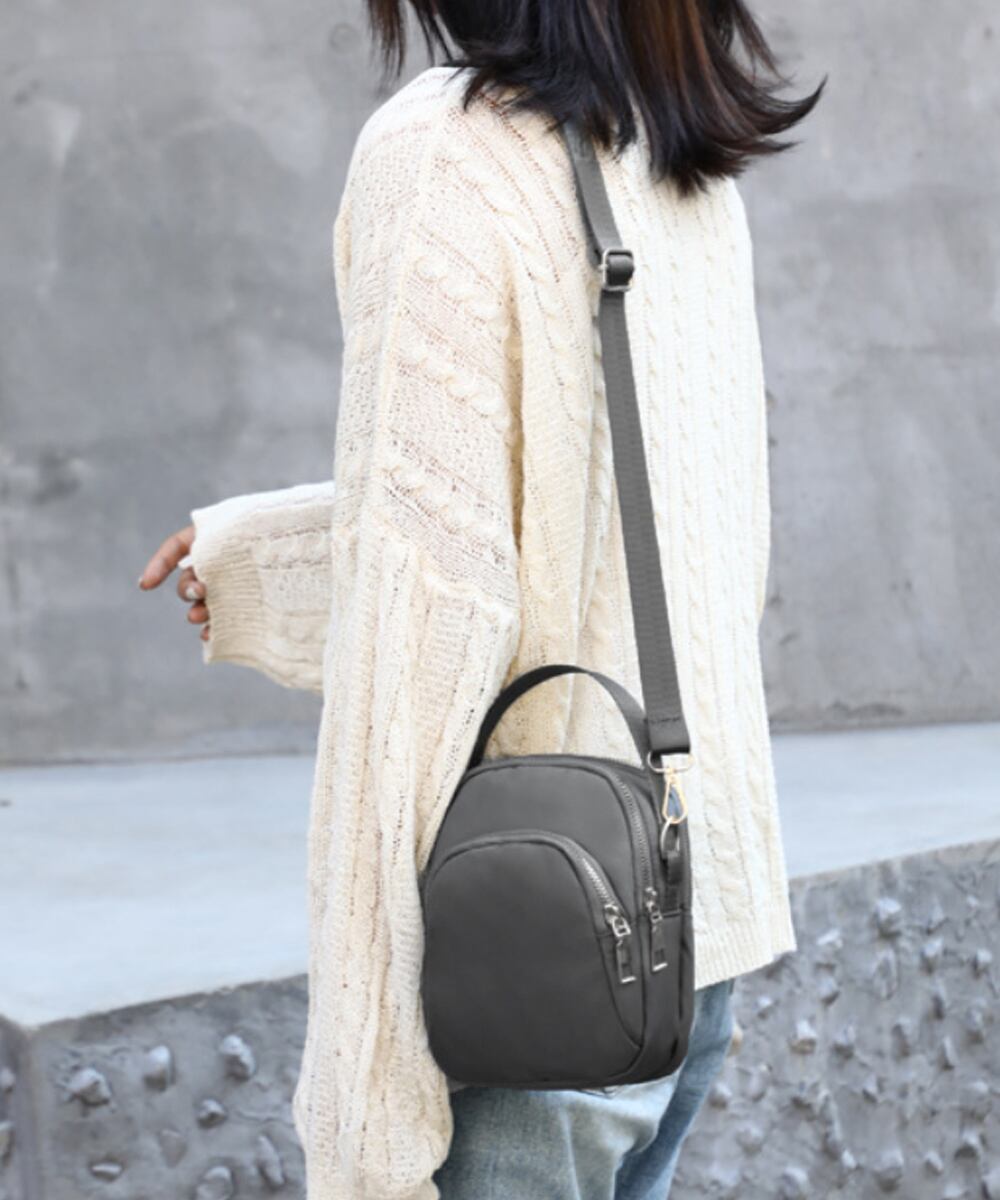 丈夫なナイロン生地を使用した、カジュアルなミニショルダーバッグ