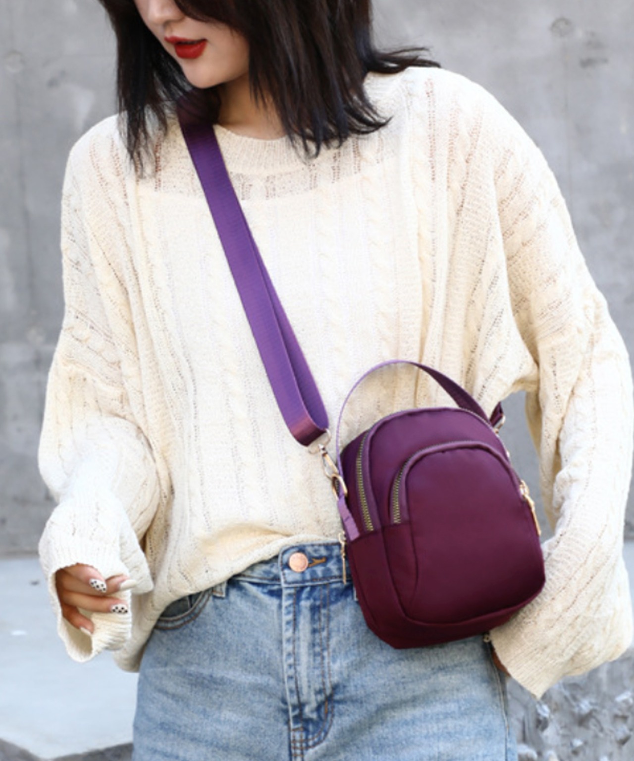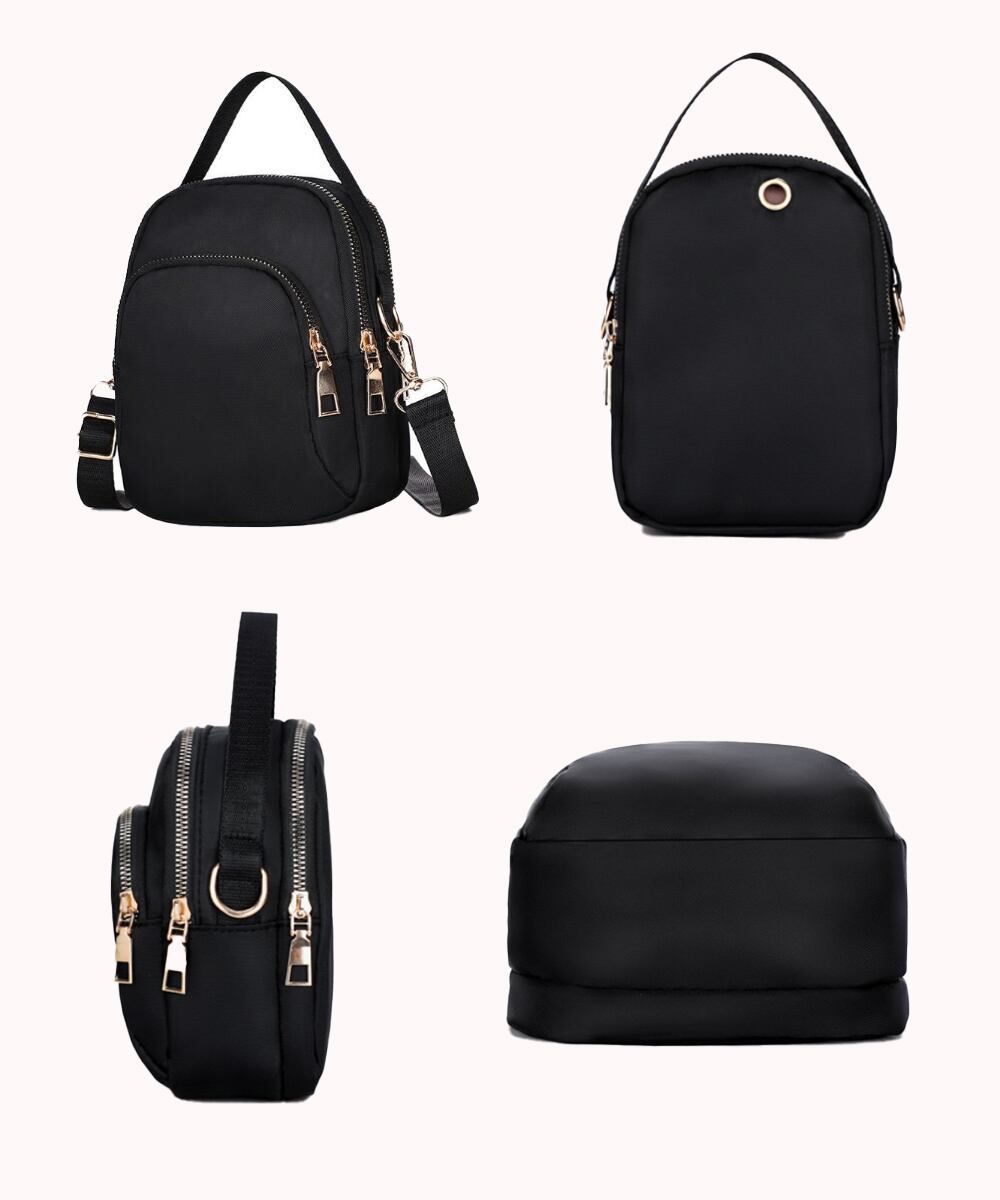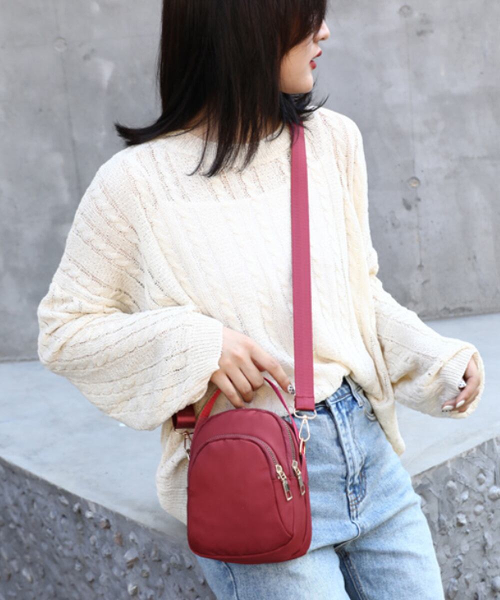 丈夫なナイロン生地を使用した、カジュアルなミニショルダーバッグ