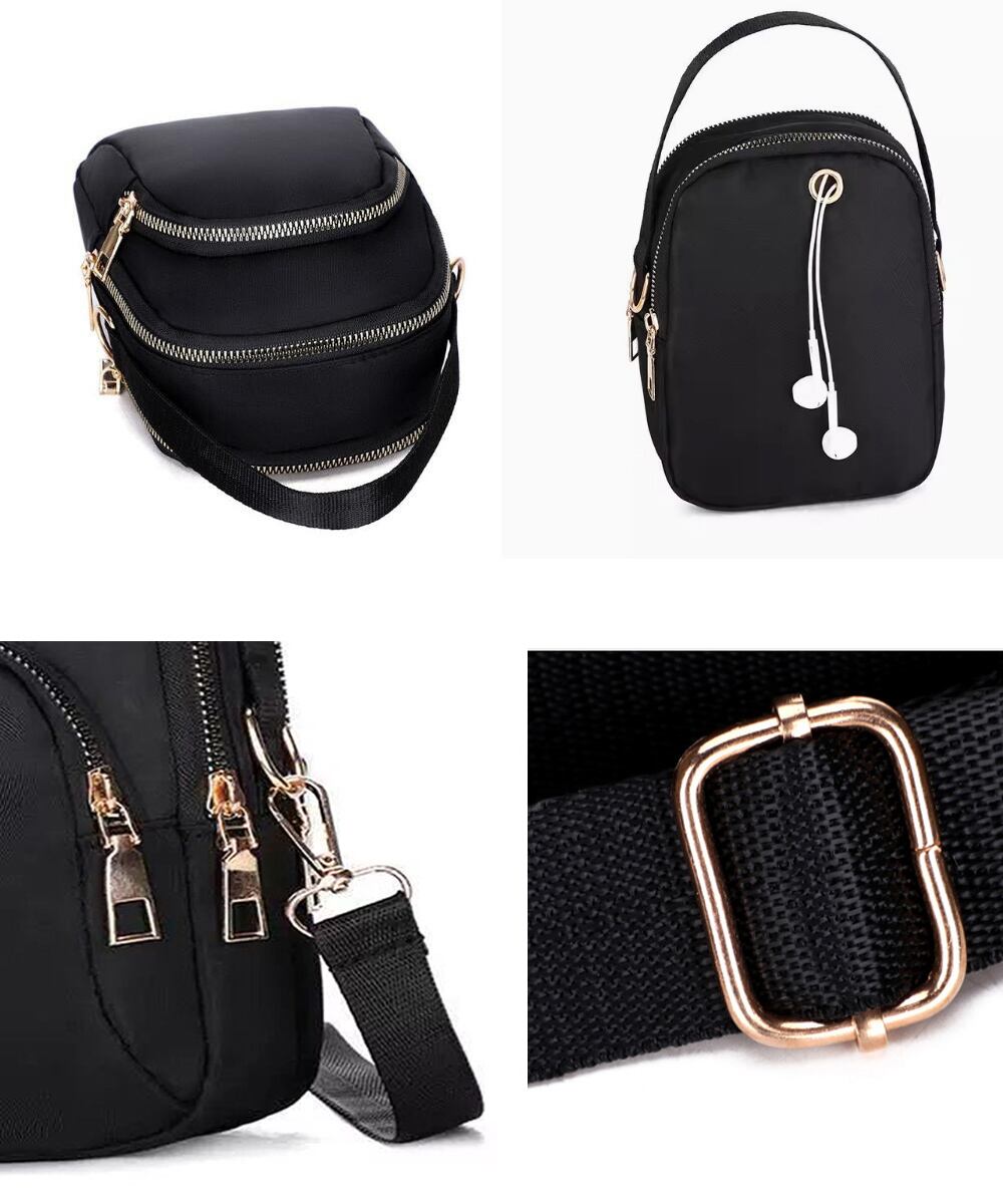 スマホポシェット黒 手提げバッグ 軽量 3wayショルダー
