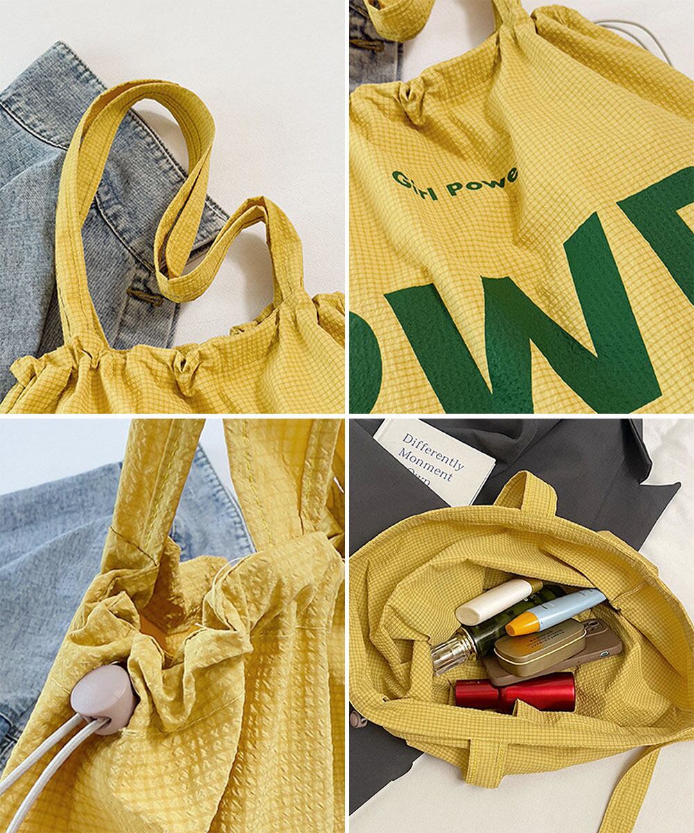 ドローストリングショルダーバッグ レディース 大きめエコバッグ おしゃれ肩掛けバッグ 軽量 カジュアル 巾着バッグ韓国風