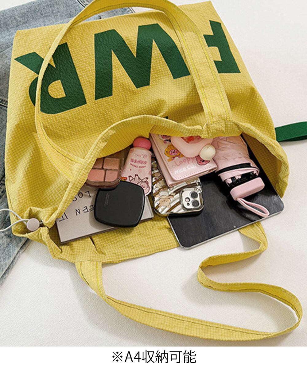 BIGロゴが目をひく、A4サイズ対応のナイロントートバッグ。