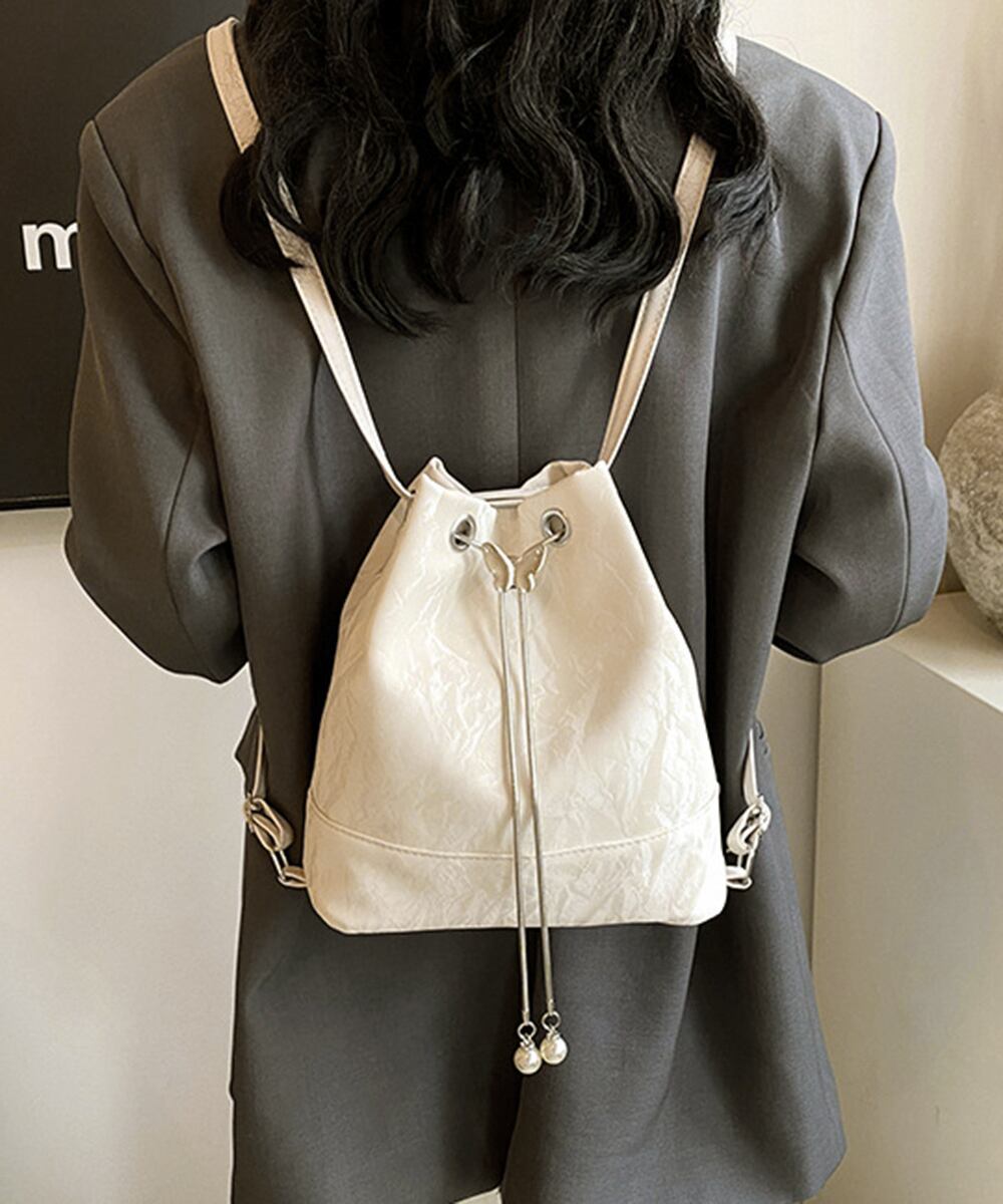 レディース ミニリュック PUレザー 大人可愛い手提げ パール付きドローストリングバッグ おしゃれ 斜め掛け 3WAY鞄