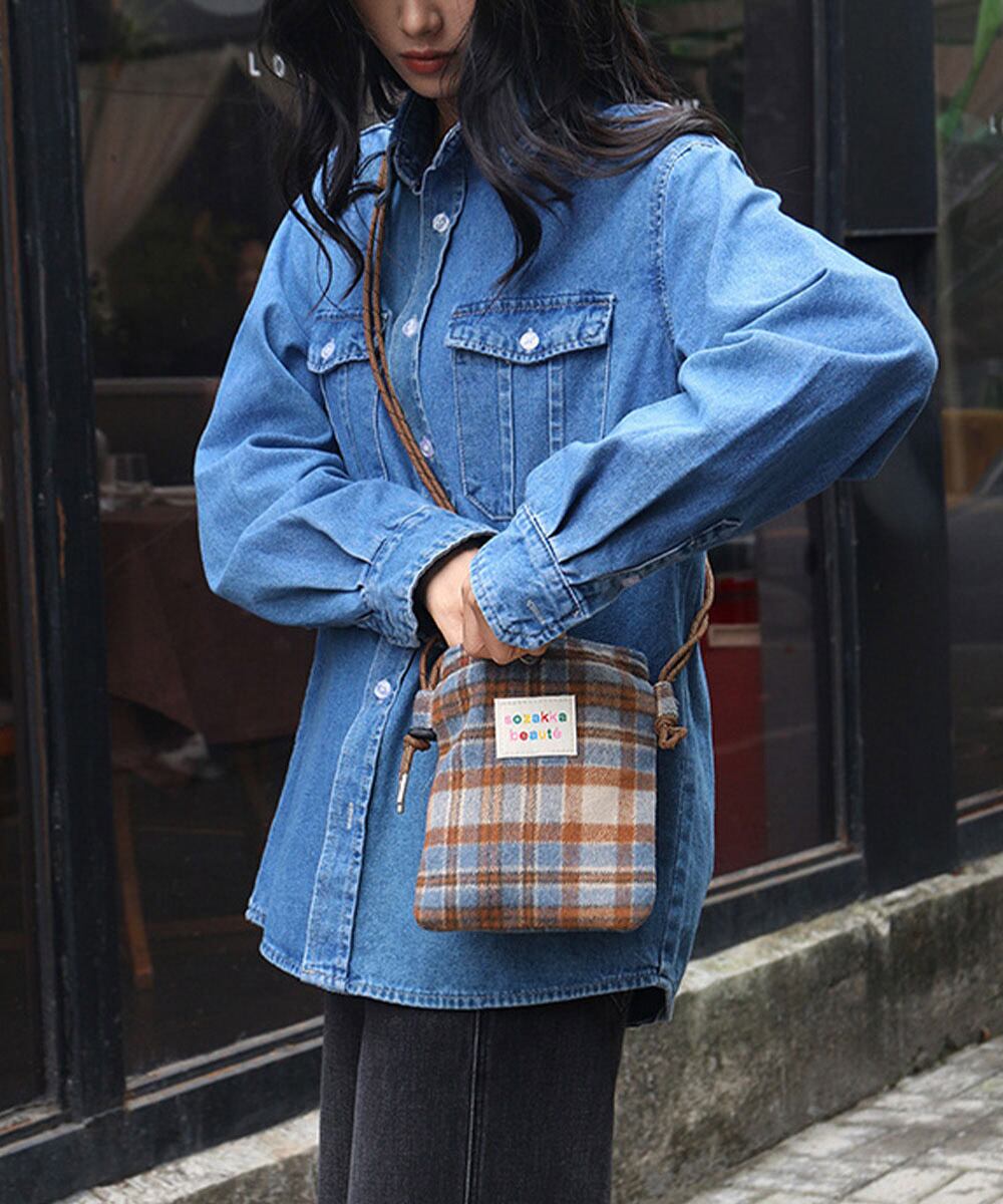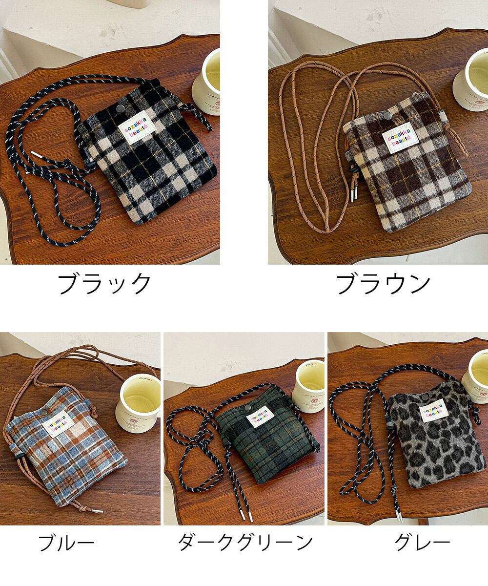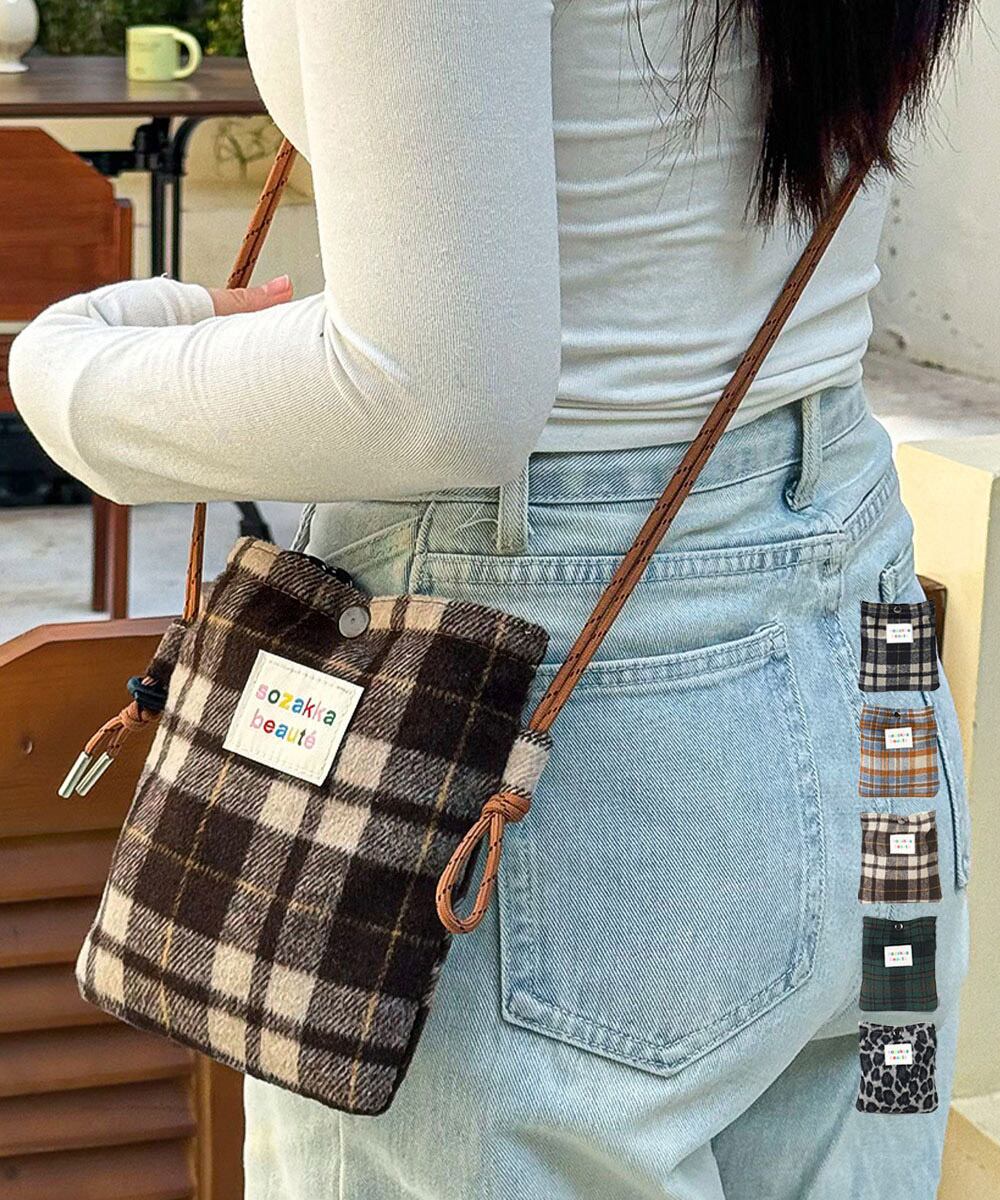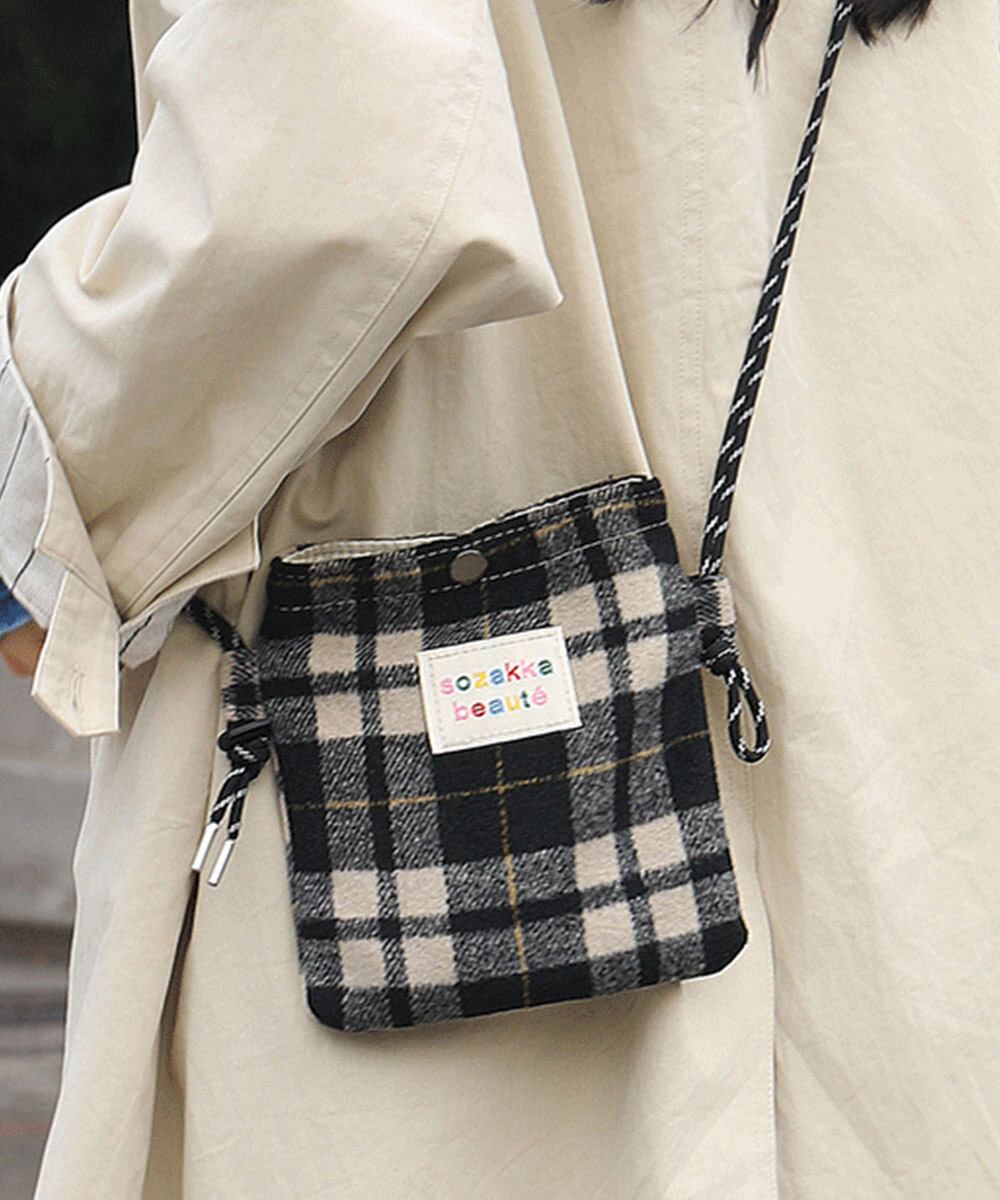 柄ものデザインがコーデに映える、ウール調素材を使用した秋冬新作の斜め掛けショルダーバッグ。