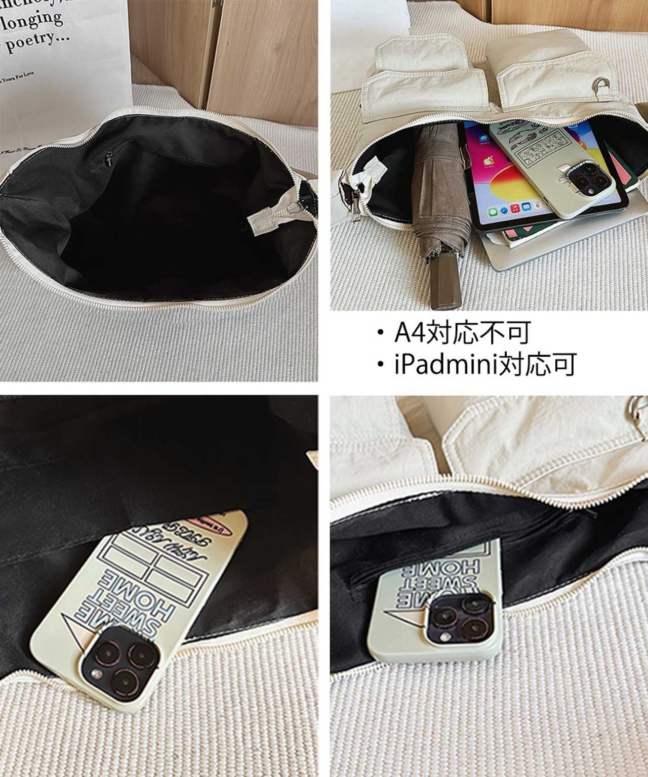 ワンショルダートートバッグ ポケット付き レディース かばん ベーシック 通学通勤カバン カジュアル 多収納手提げ鞄 黒