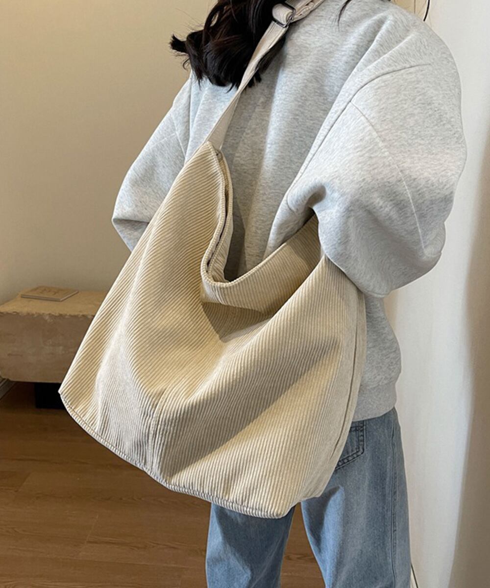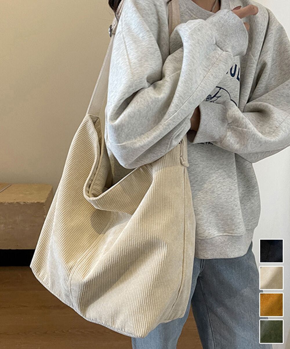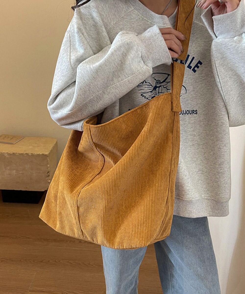 コーデュロイショルダーバッグ大きめ韓国風