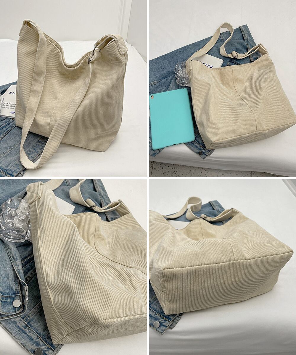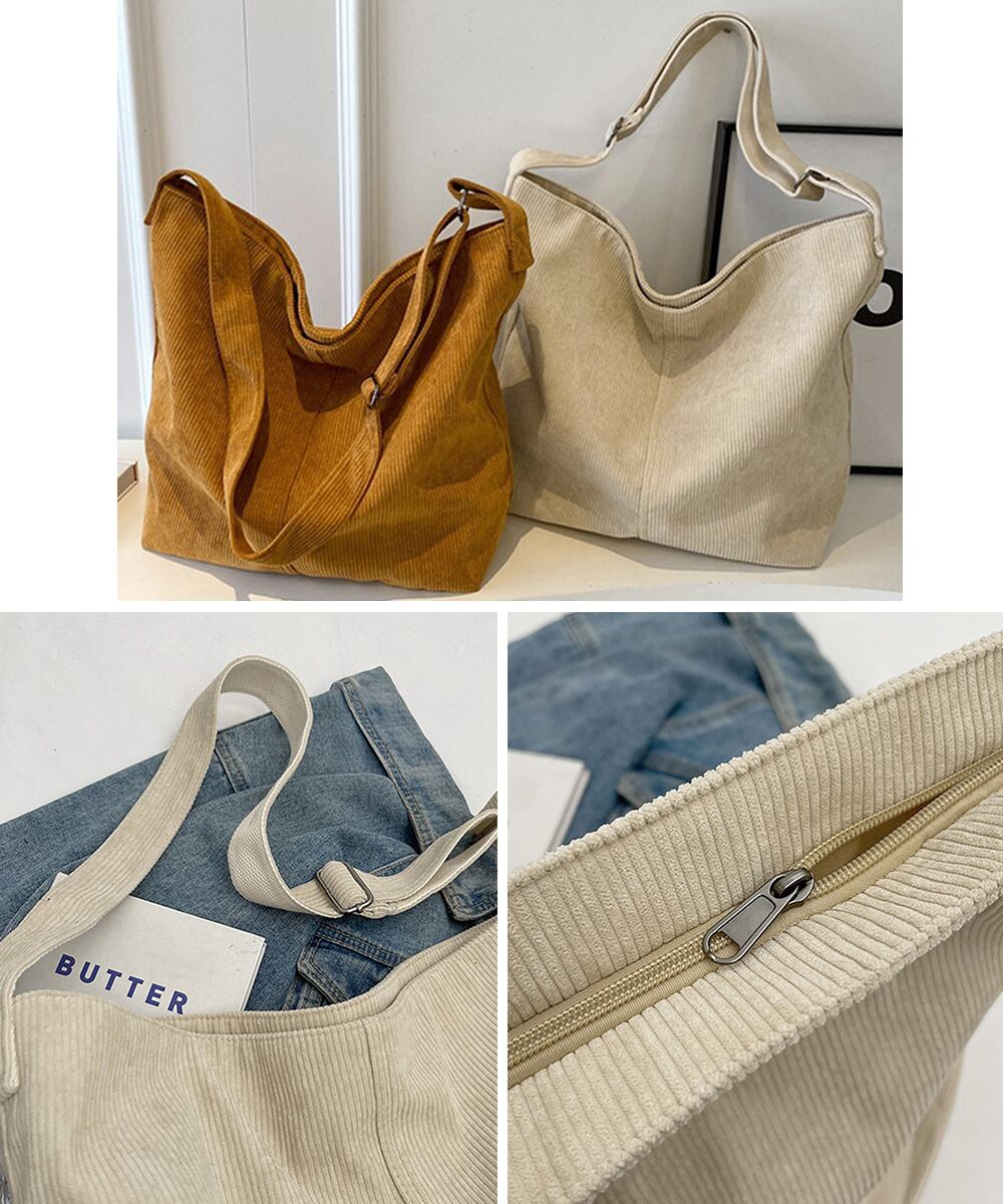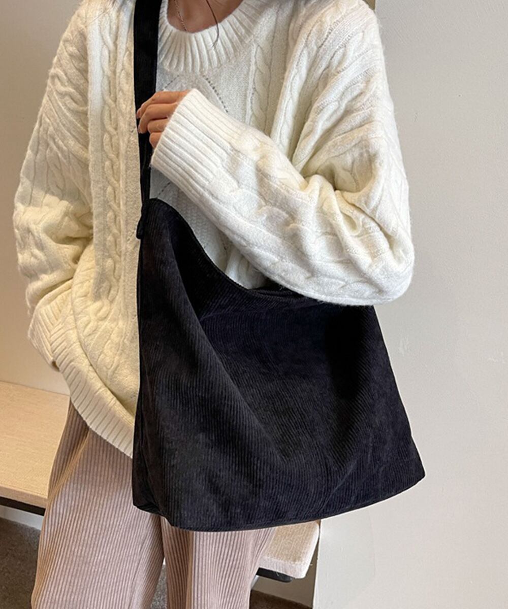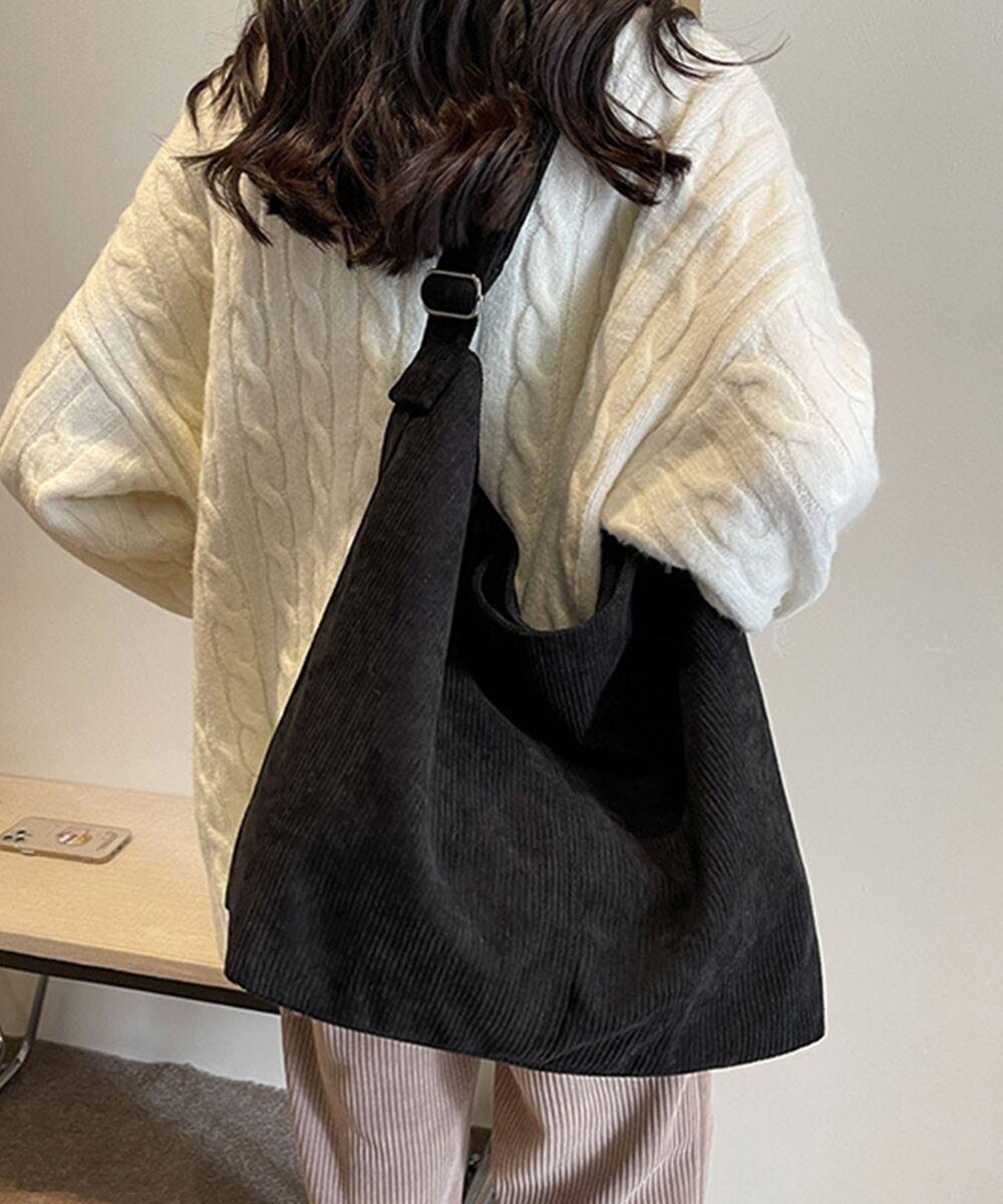コーデュロイショルダーバッグ大きめ韓国風