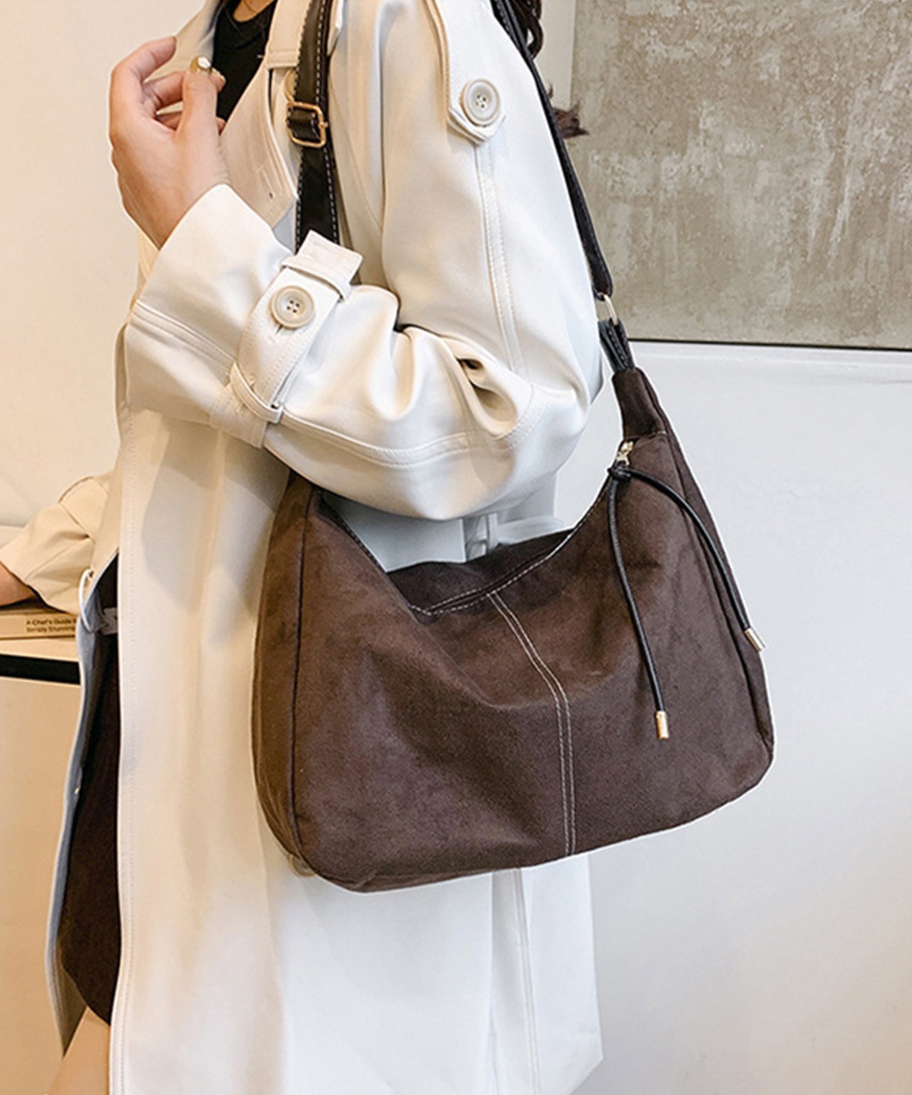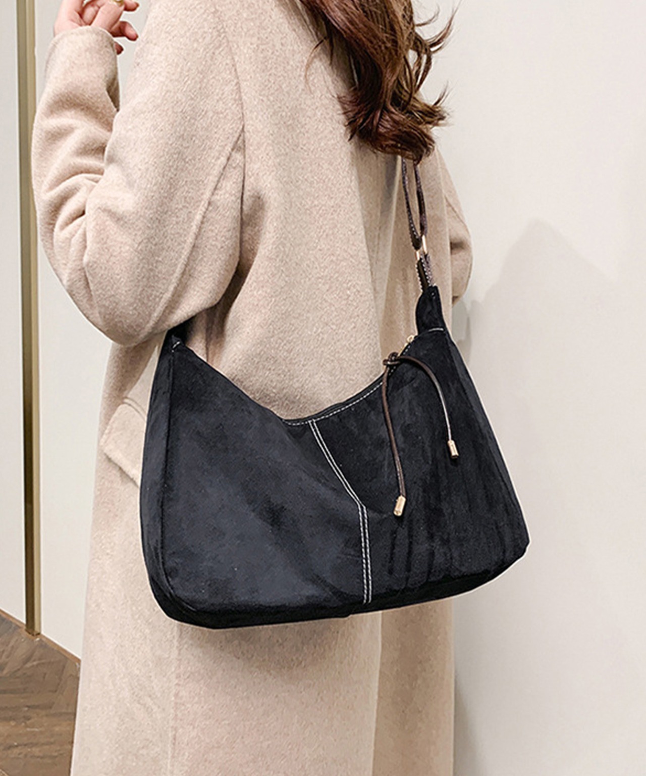 やわらかなスエード調素材が上品なショルダーバッグ。