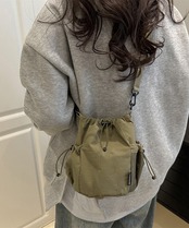 バケットバッグ ドローストリング付き ミニ巾着バッグ 多収納 カジュアルかばん コンパクト 斜め掛けバッグ 大人かわいい