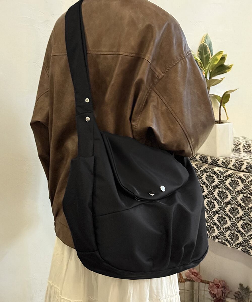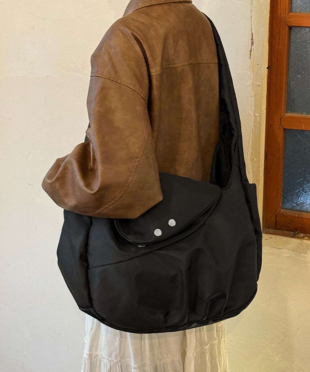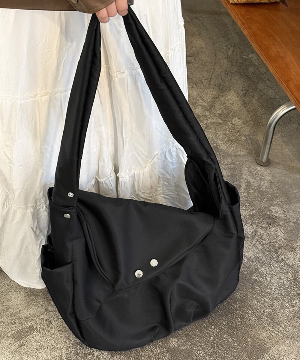 通勤や通学にぴったりで、たっぷり収納できるショルダーバッグ。