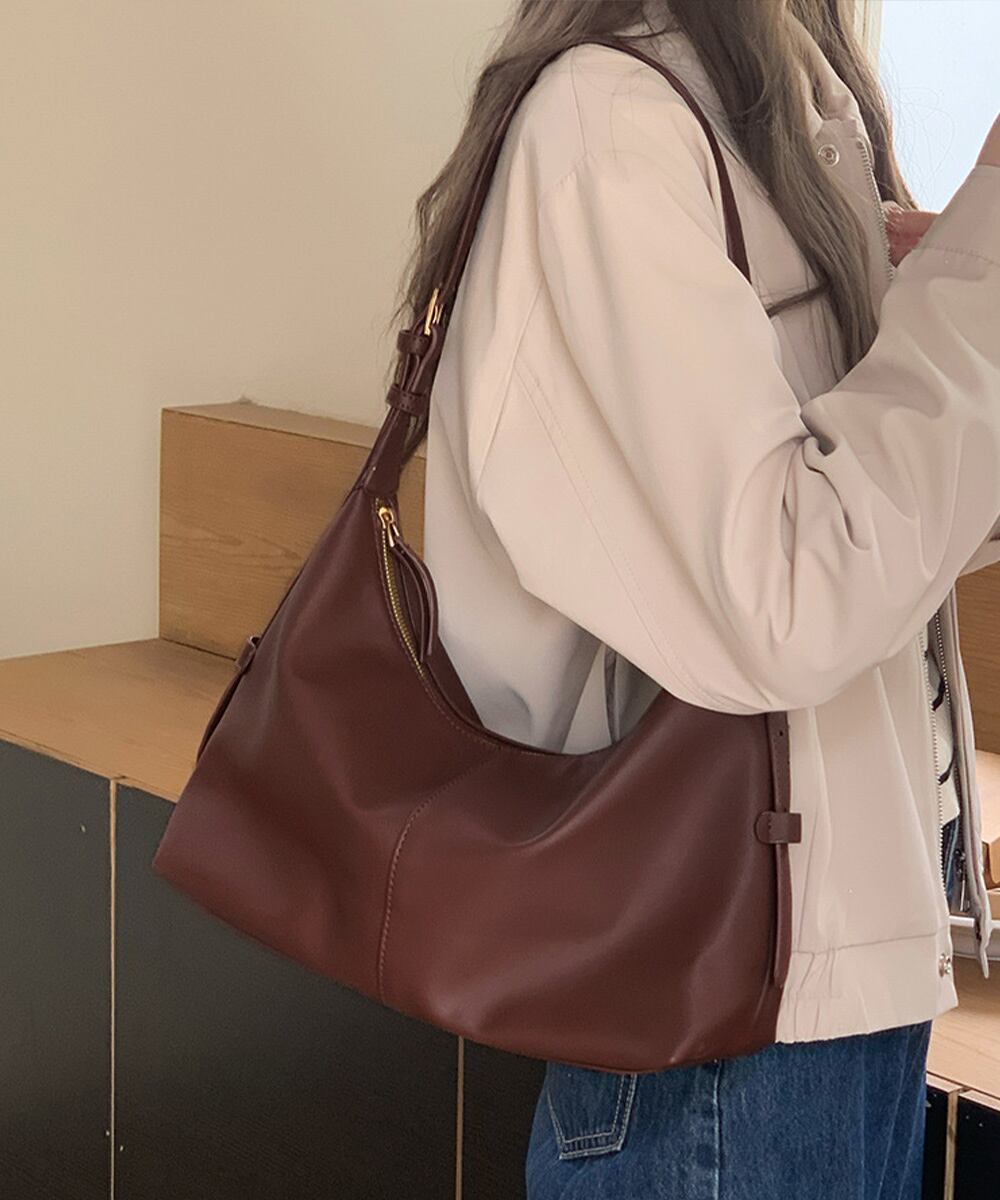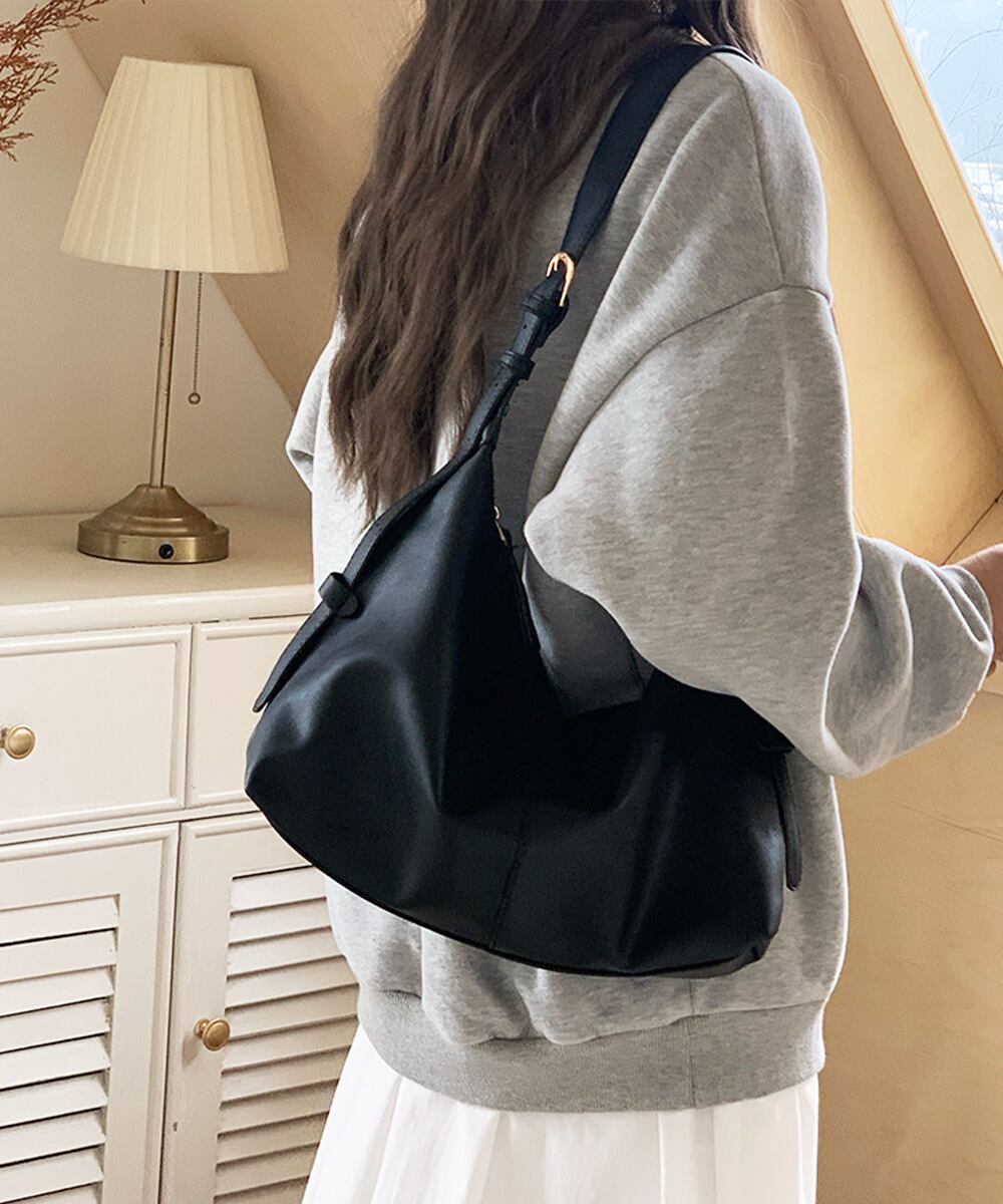 柔らかく落ち感のある素材が魅力のショルダーバッグ。