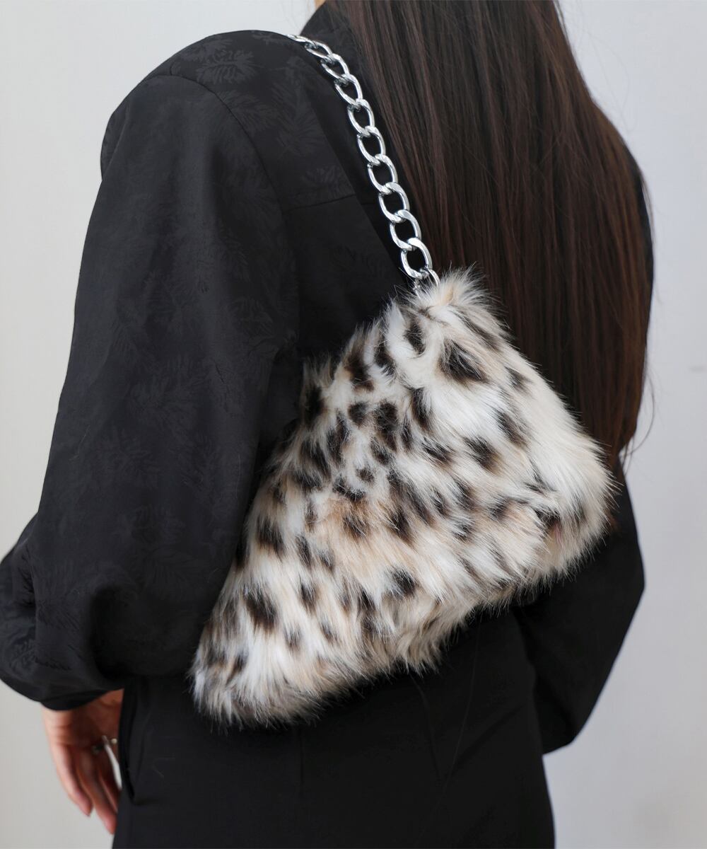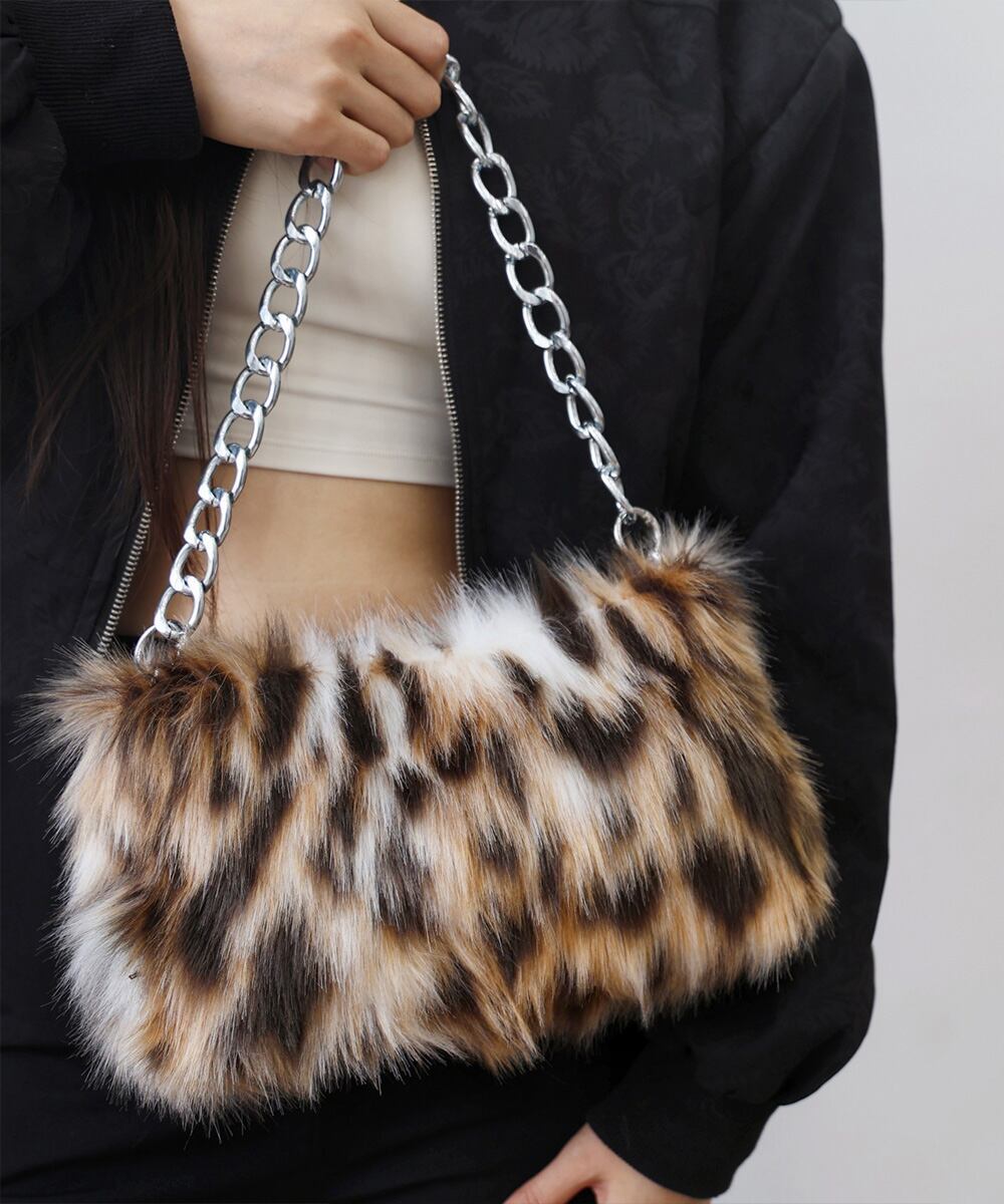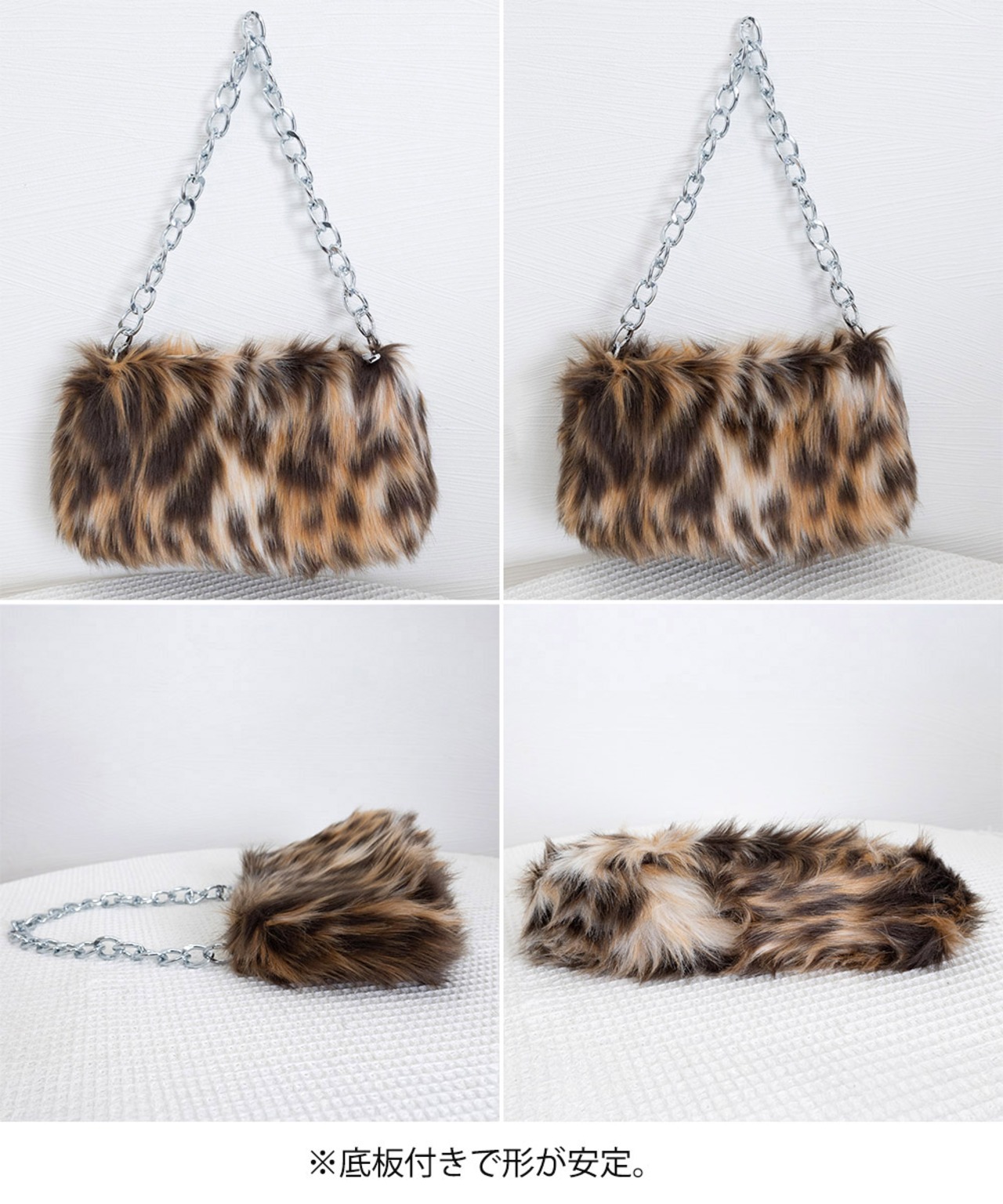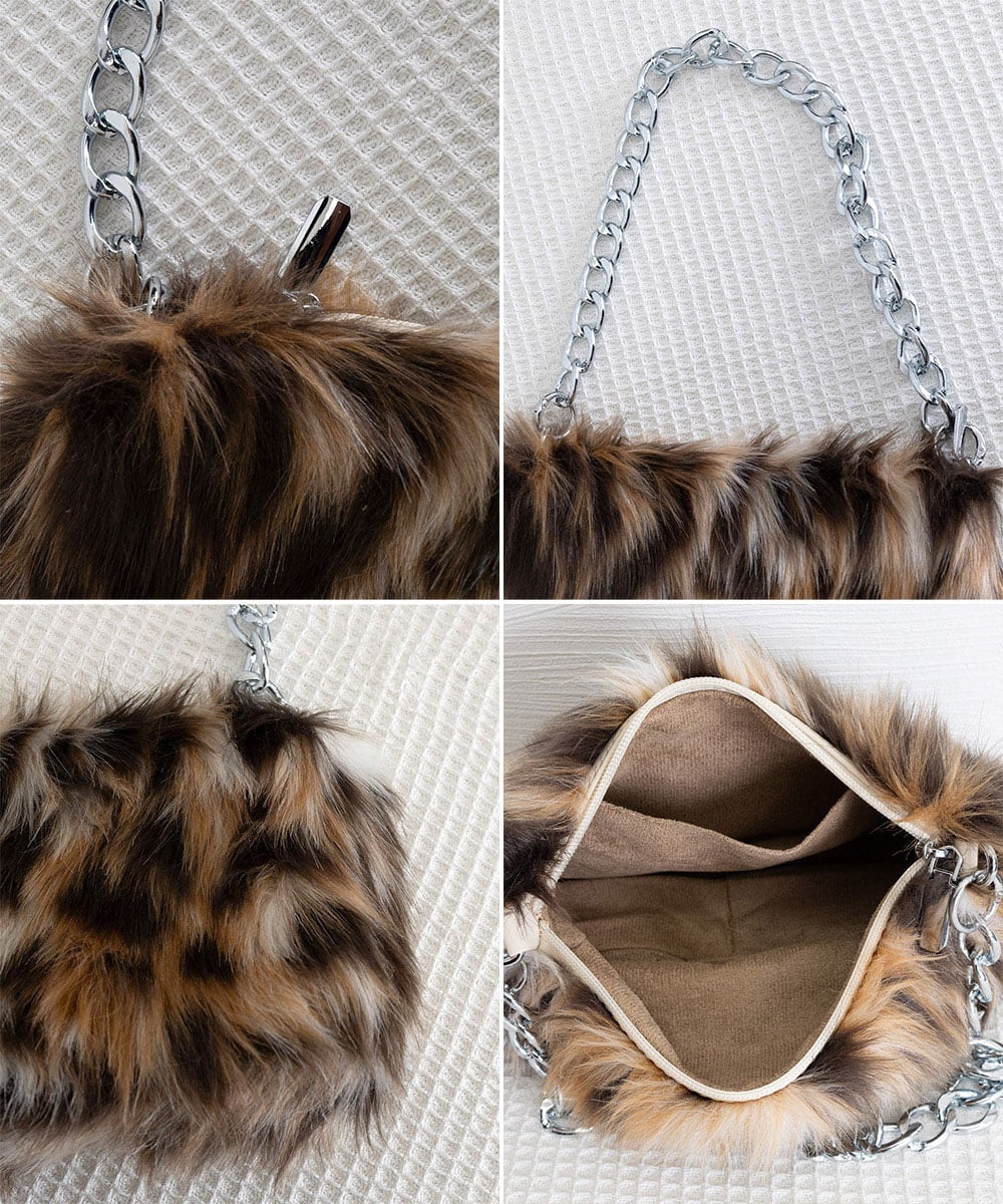 ボリュームフェイクファー チェーン肩掛けバッグ レディース おしゃれ手提げカバン レオパード柄 ふわふわ鞄 ハンドバッグ
