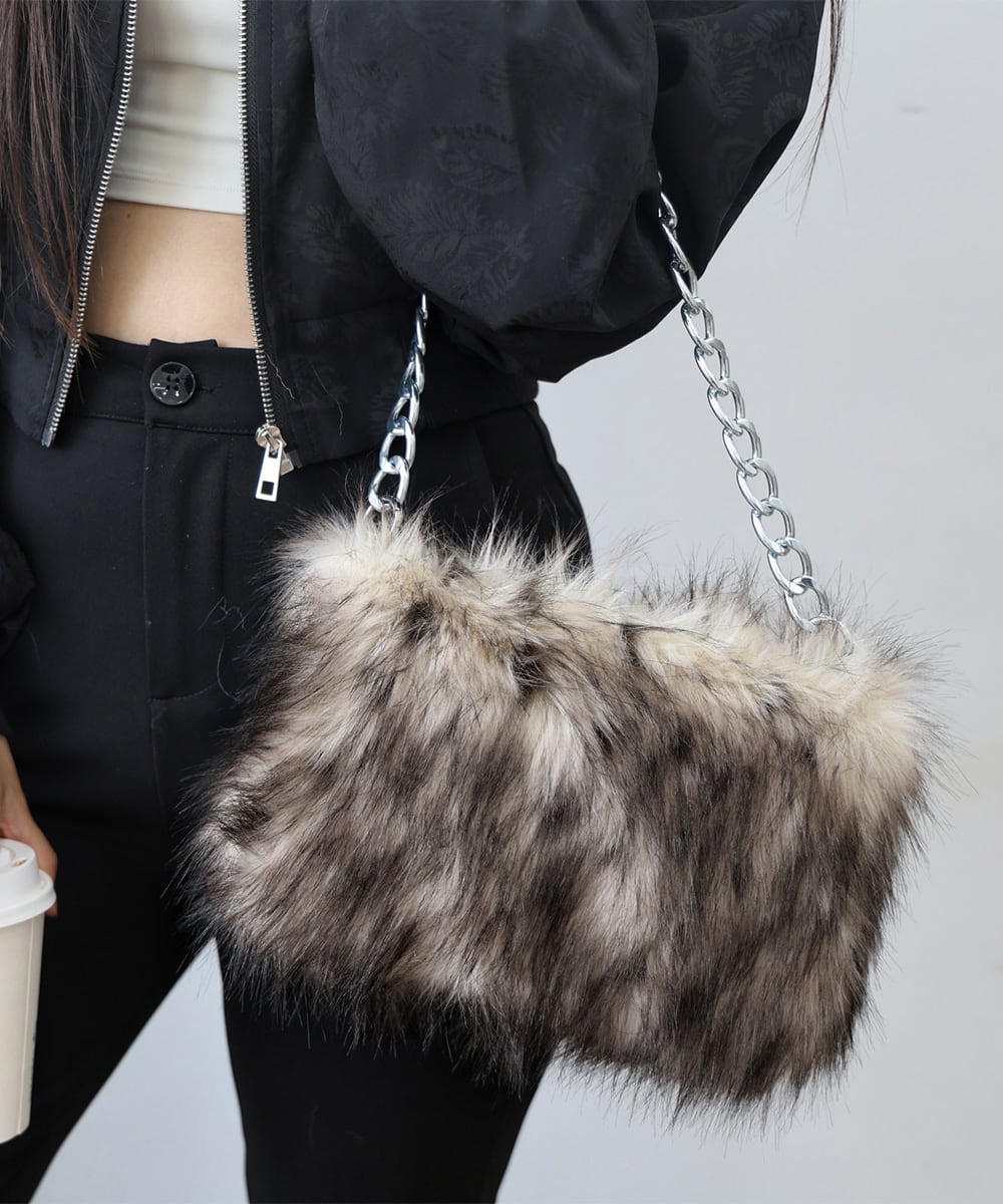 カラーファーが目を惹くチェーンショルダーバッグ。