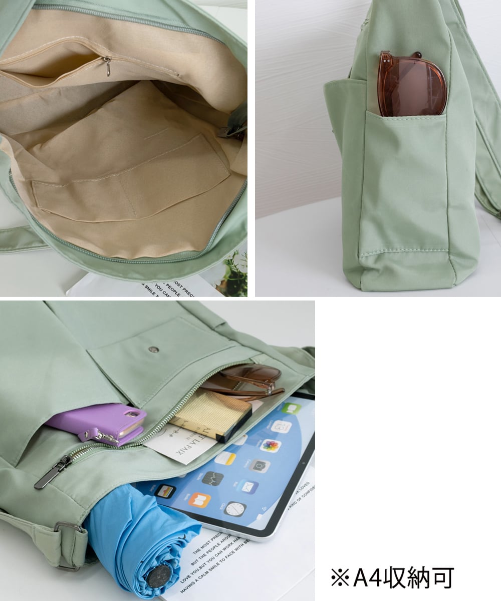 A4サイズ対応で、通勤・通学はもちろんデイリー使いにも便利。