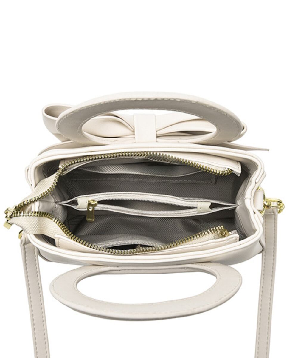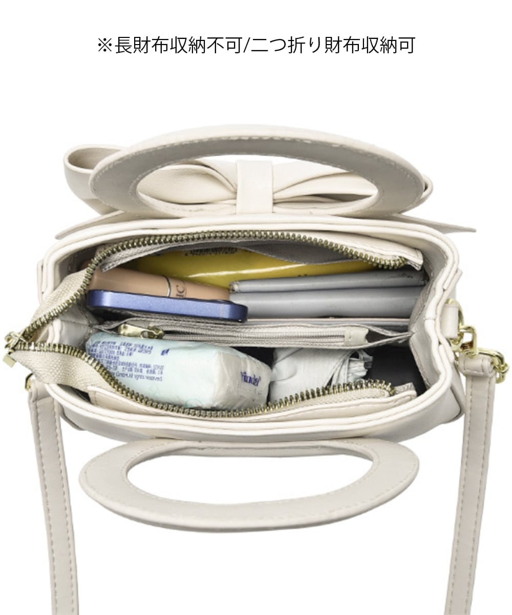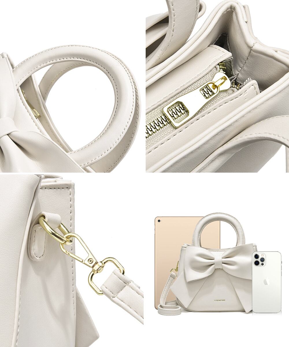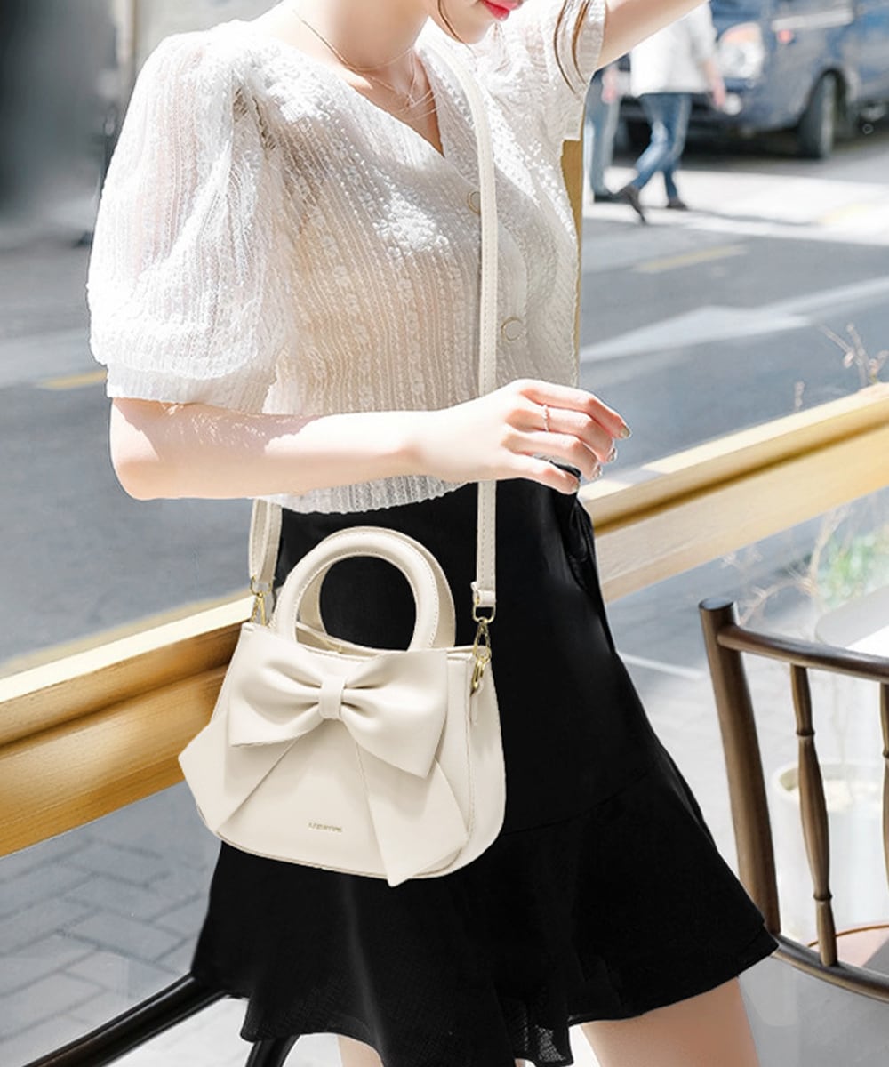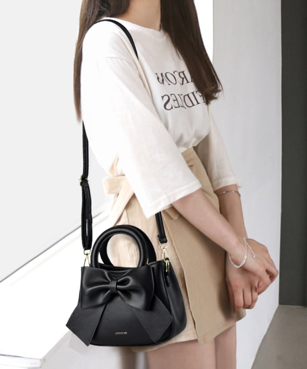 リボンデザインが目を引く、フェミニンな2WAYミニハンドバッグ。