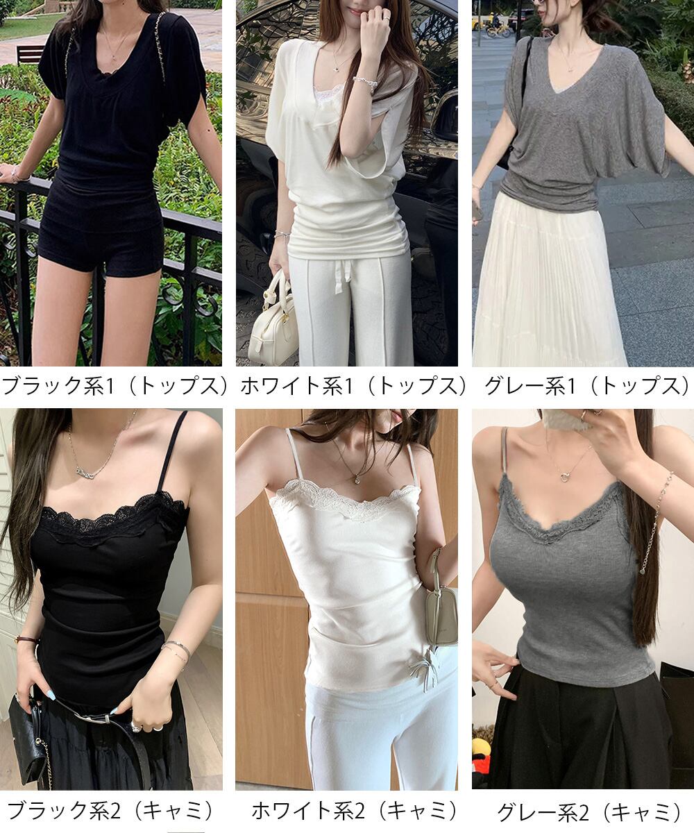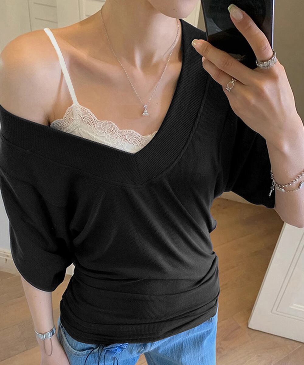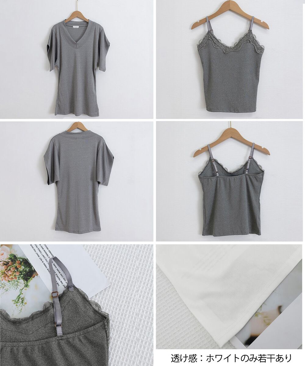 VネックTシャツ レースキャミソール単品