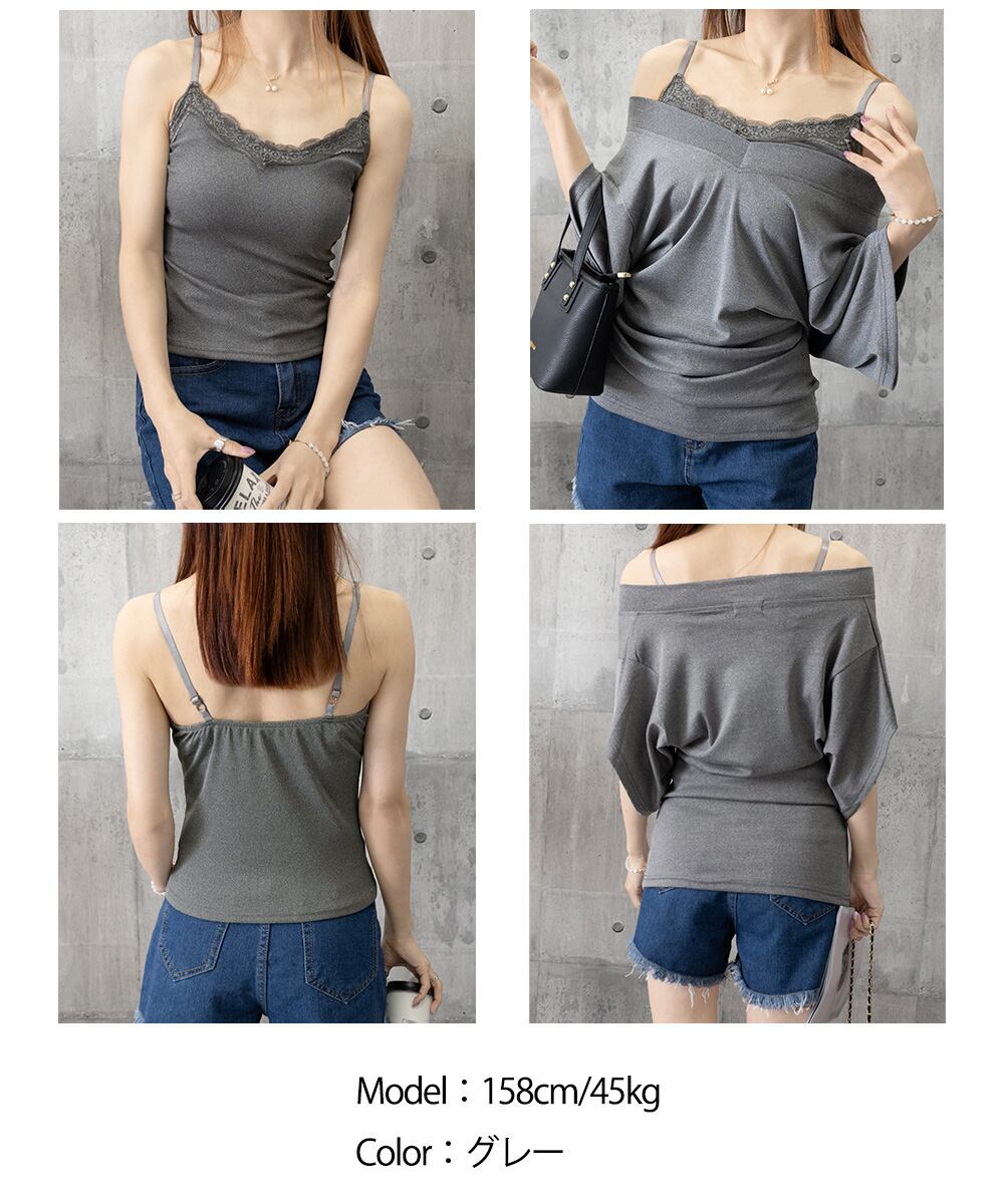 ドルマンスリーブtシャツ半袖 オフショルダーTシャツ 半袖無地t 薄手トップス インナーキャミソール 2タイプ選べる夏服