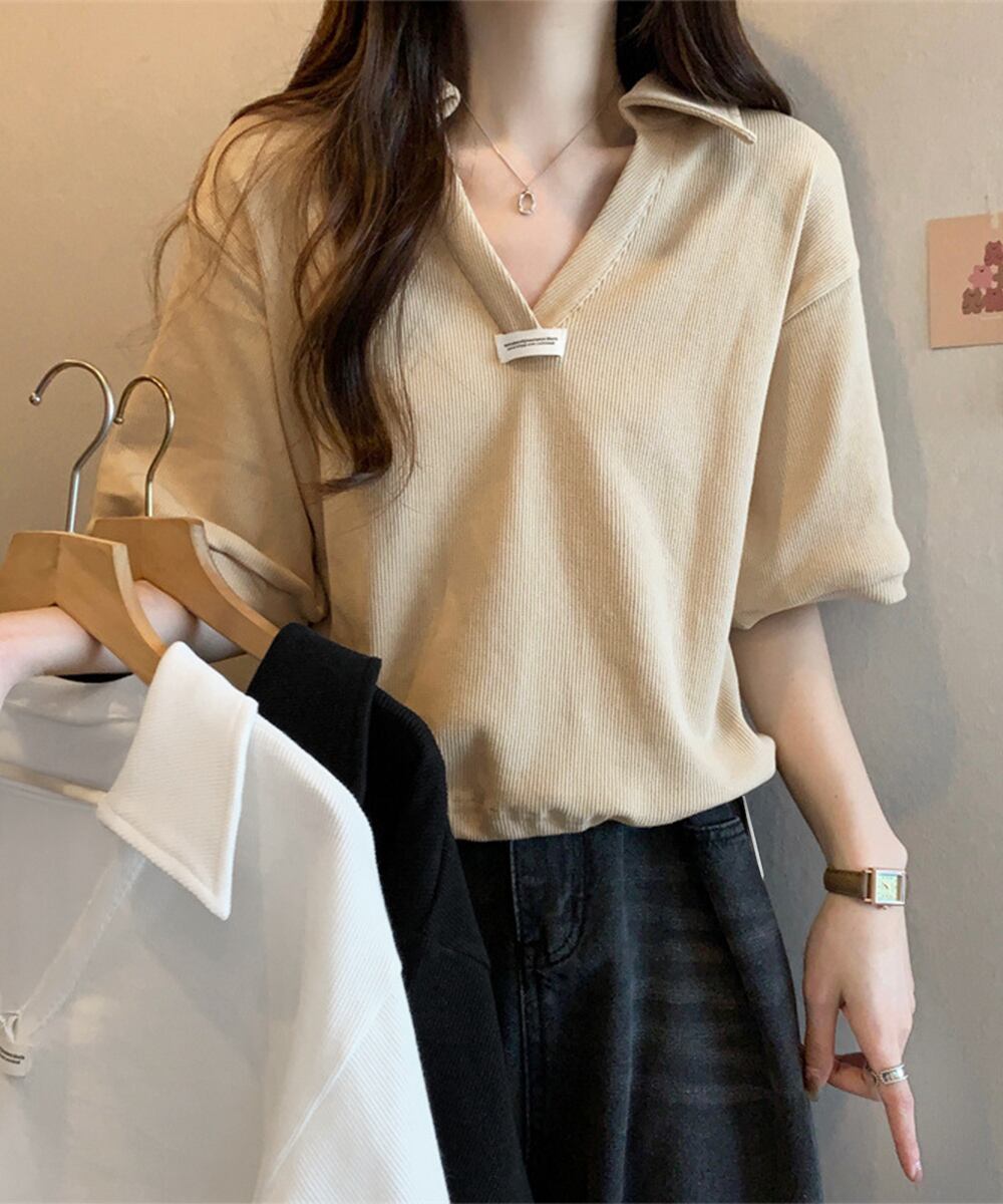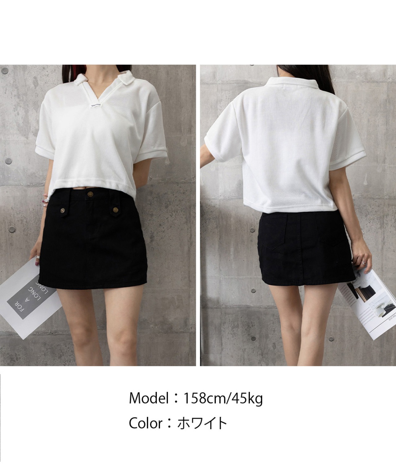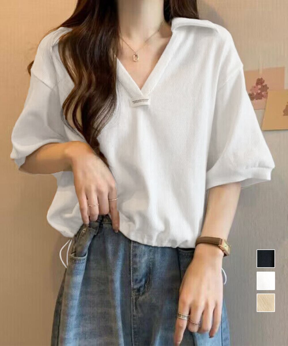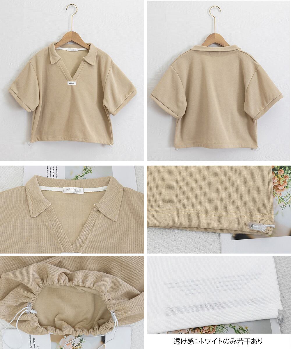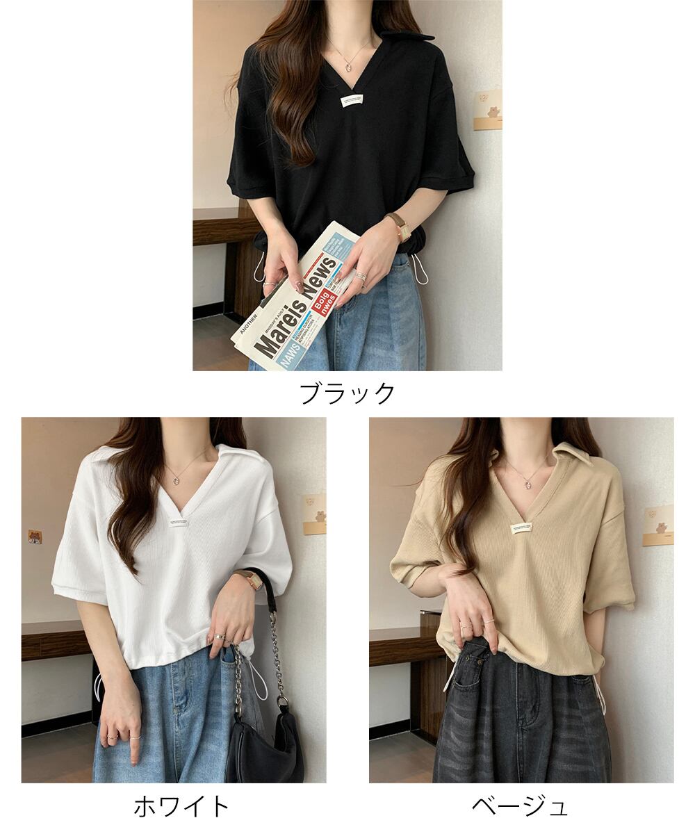 半袖ポロシャツ 着やせショート丈カットソー カジュアルスキッパーtシャツ 着回し襟付きトップス 裾ドロストTシャツ韓国風