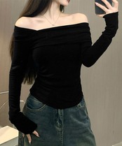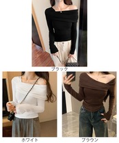 肩見せトップス長袖 おしゃれt 着やせ きれいめTシャツ黒