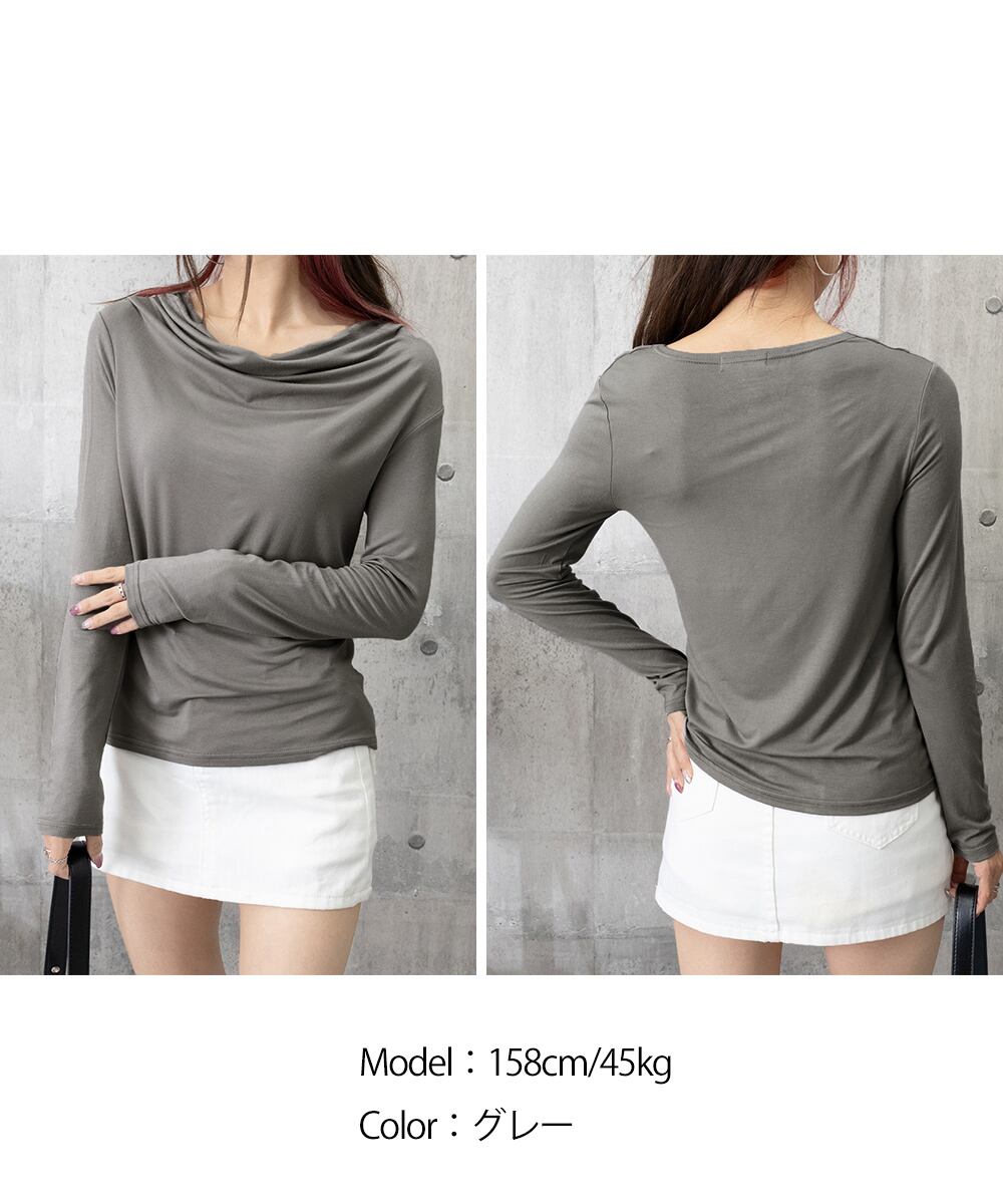 ドレープネックTシャツ 長袖トップス春秋