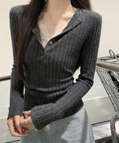 フェミニンTシャツ 細身Tシャツ 通勤 ダークトーンニット