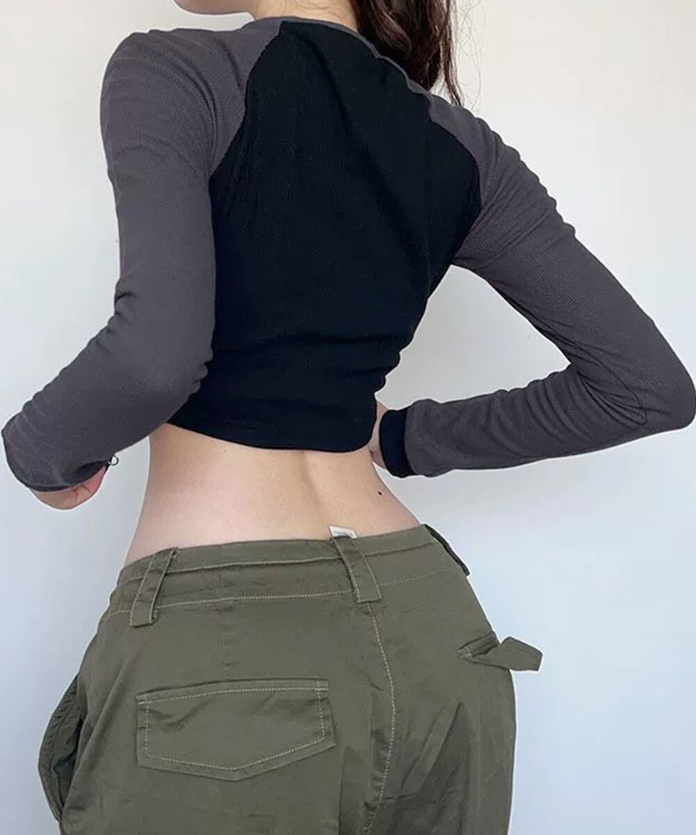 レディース バイカラータイトトップス へそ出しカットソー 自転車 バイク フィットネス サイクリングジャージ ショート丈