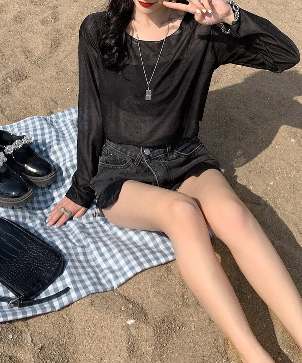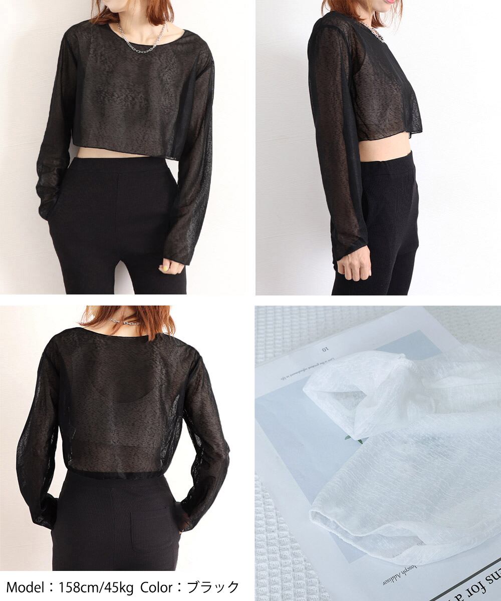 シースルーTシャツ 大人可愛い 春秋夏 丸首カットソー黒白