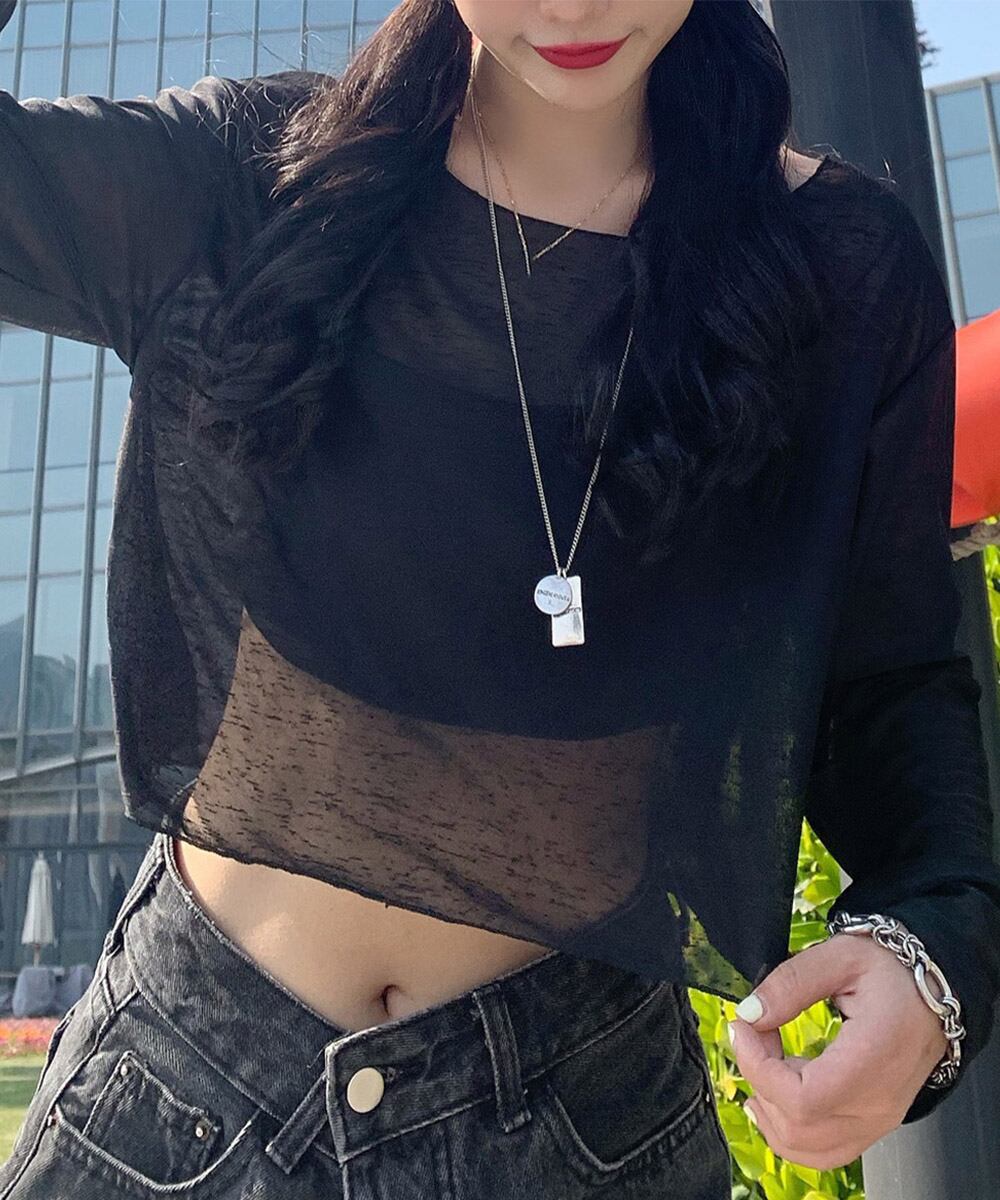 ※デザイン上透け感がございますので、インナーの着用をおすすめ致します。
