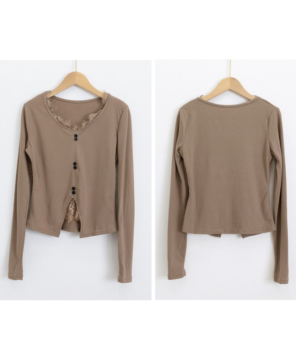 カットソー レース切り替え 長袖Tシャツ