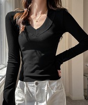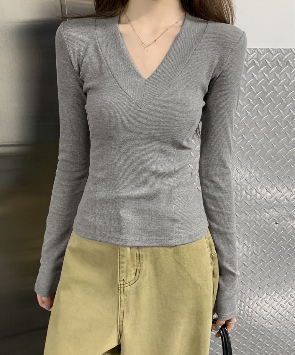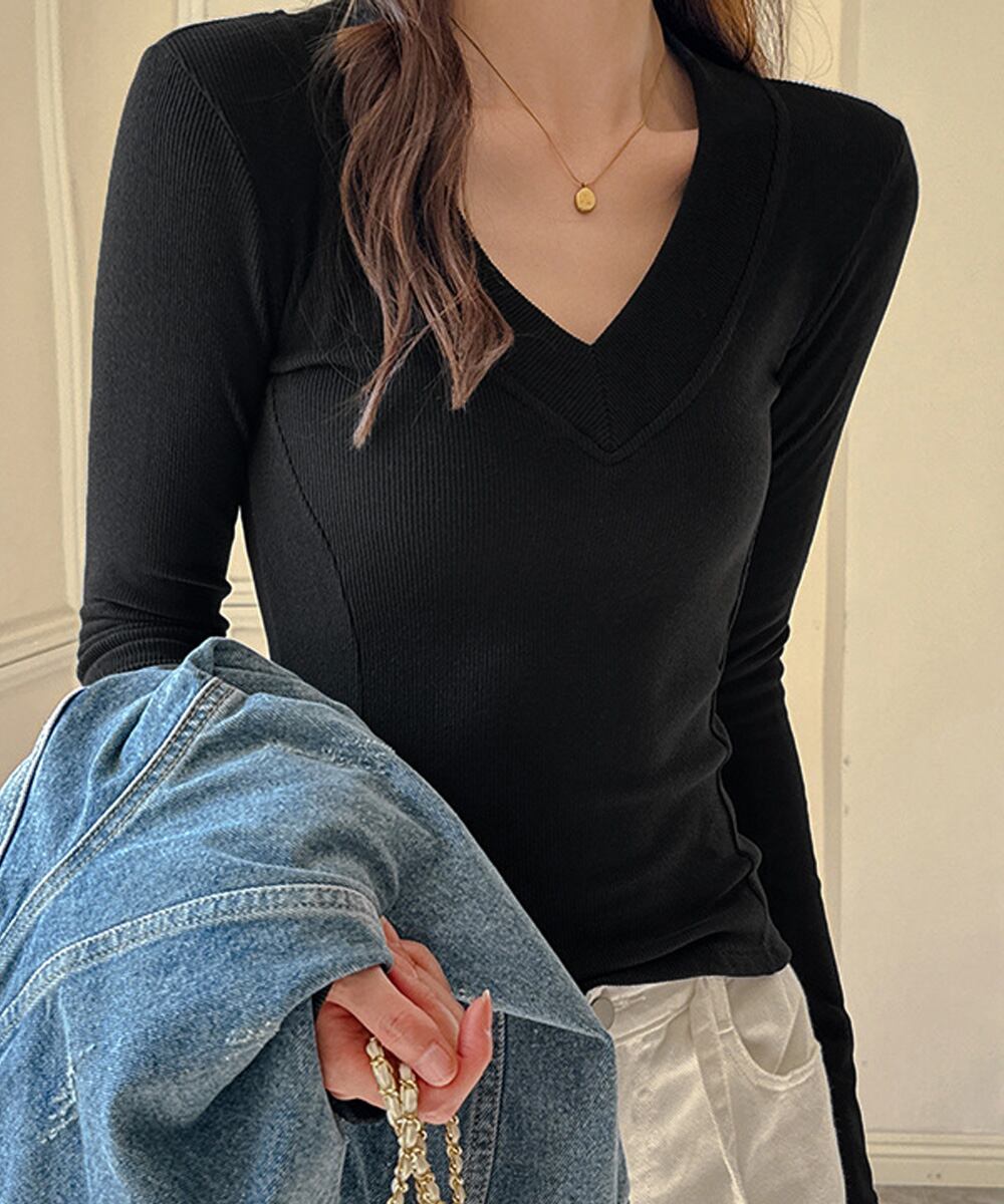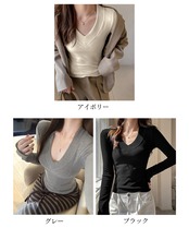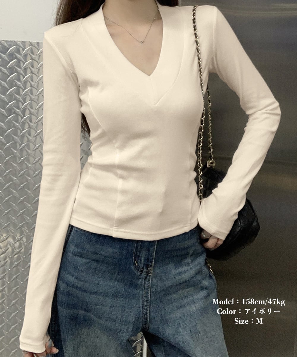 Vネック 長袖Tシャツ 韓国風カットソー