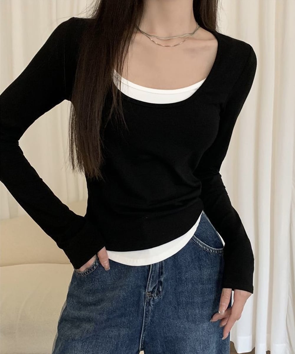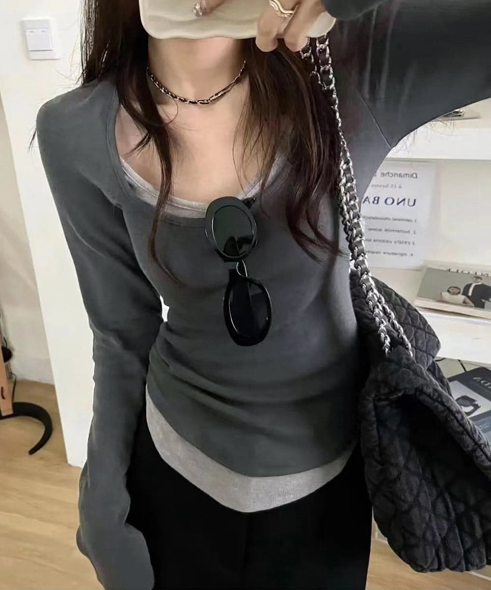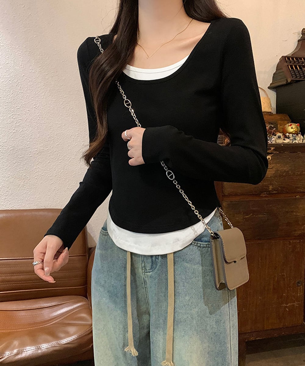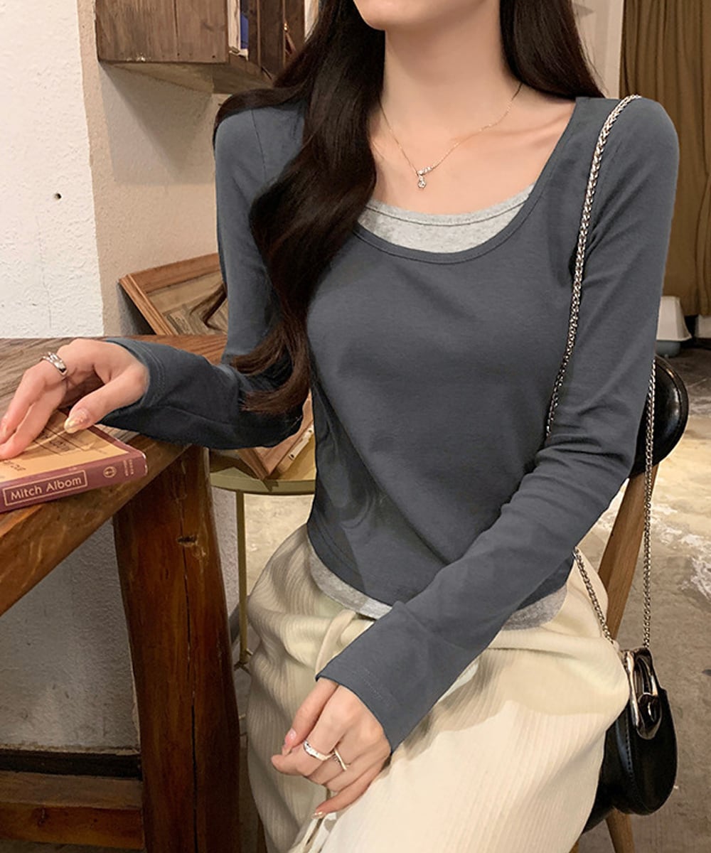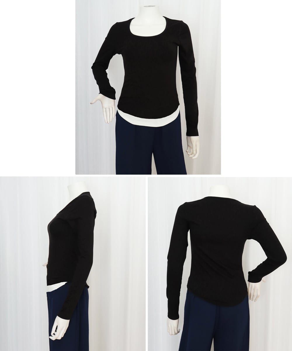 長袖Tシャツ フェイクレイヤード 着やせ