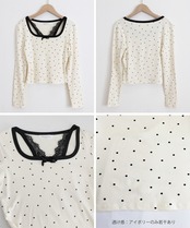 ドット柄トップス レイヤード風カットソー