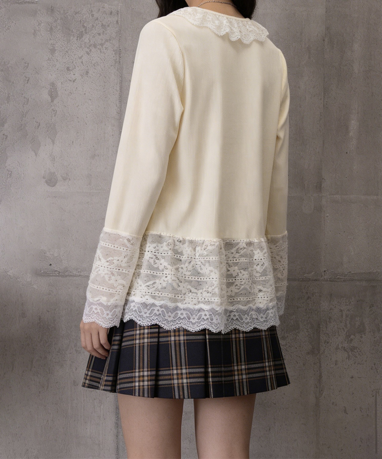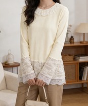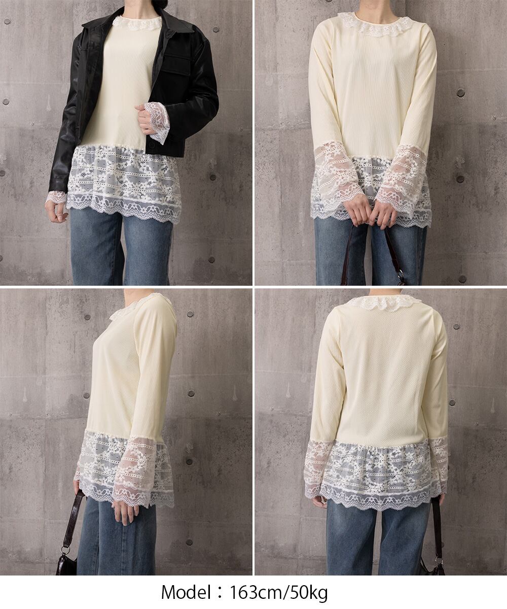 アウターと重ねて袖や裾のレースをチラ見せれば、アクセントになって可愛らしさがアップ。