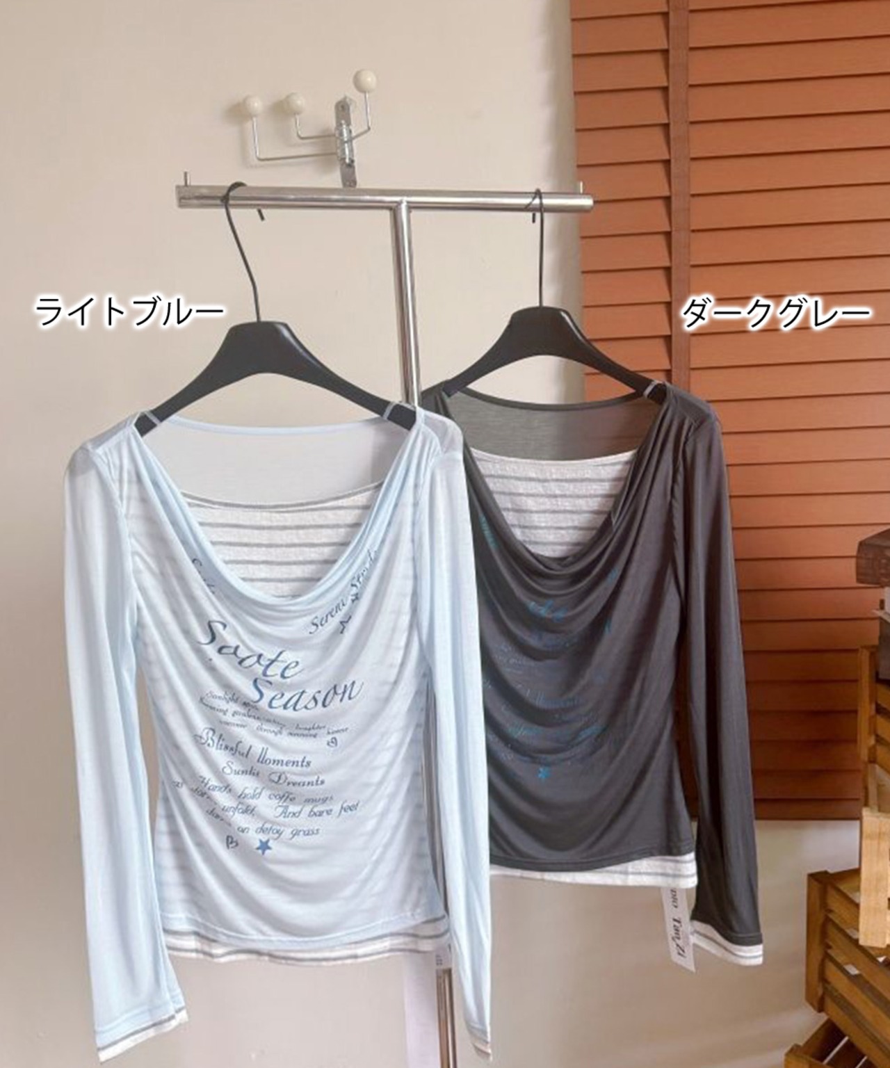 ドレープネックトップスレイヤード風ロゴT