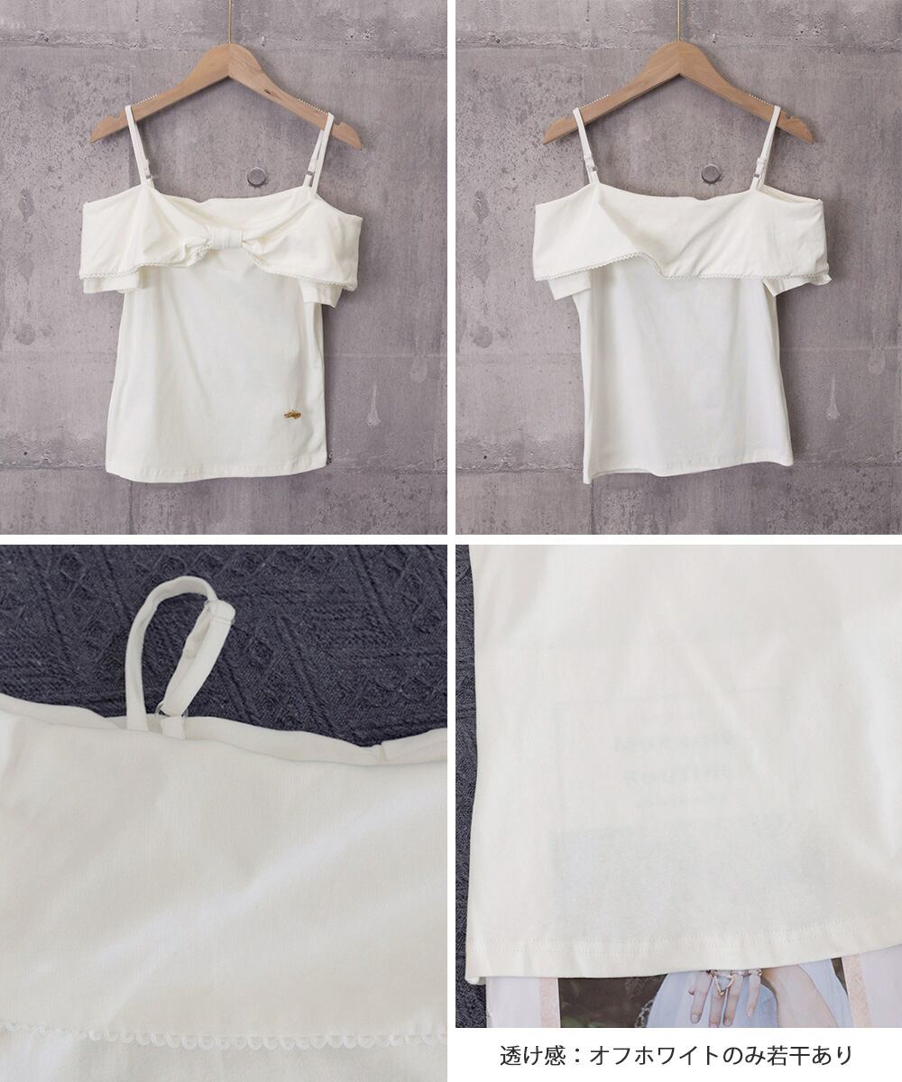 ビッグリボンオフショルカットソー 韓国風 きれいめトップス 大人可愛いカットソー肩見せ デコルテ見せトップス華奢見え夏服
