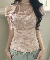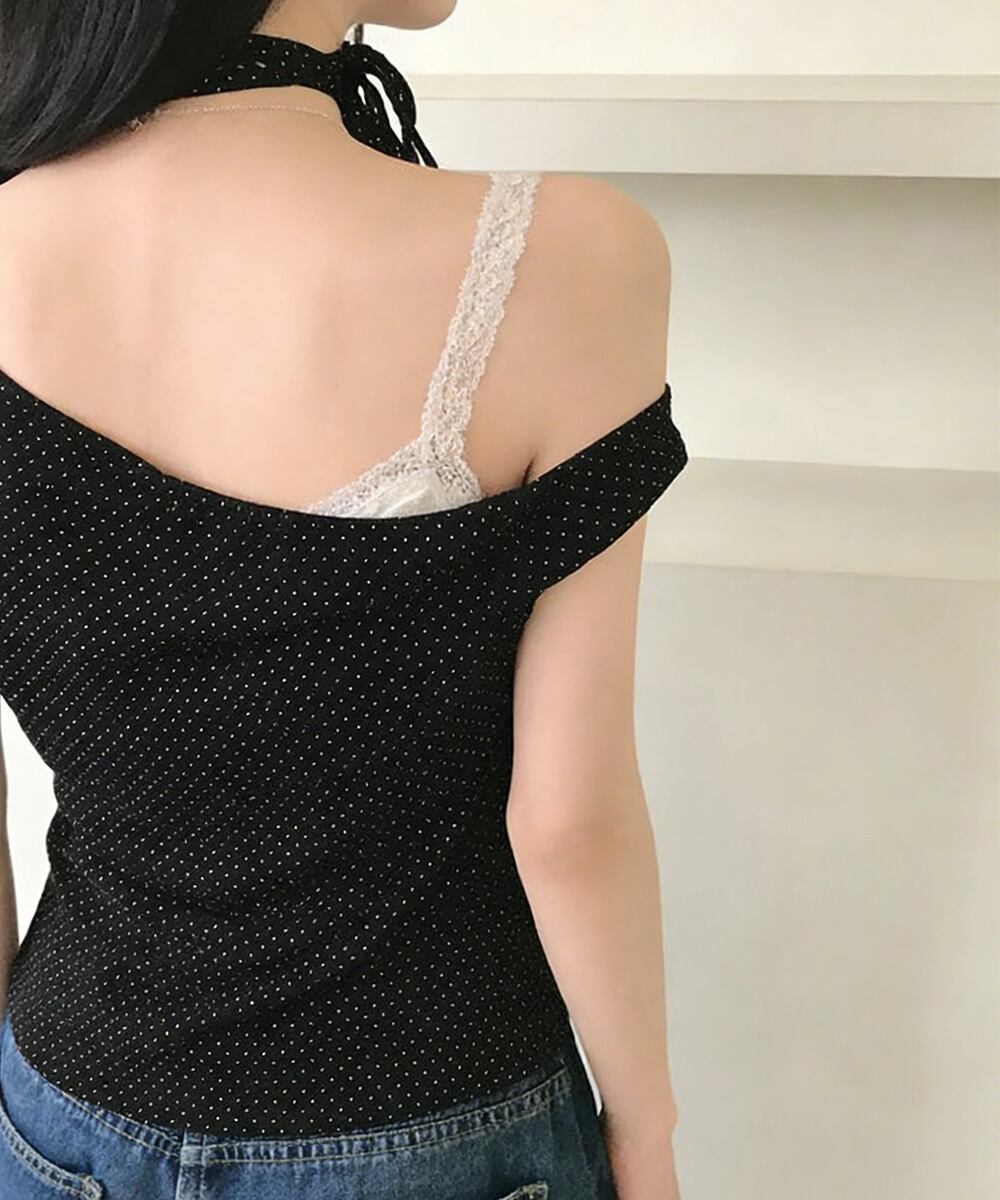 ドット柄tシャツオフショルダートップス夏