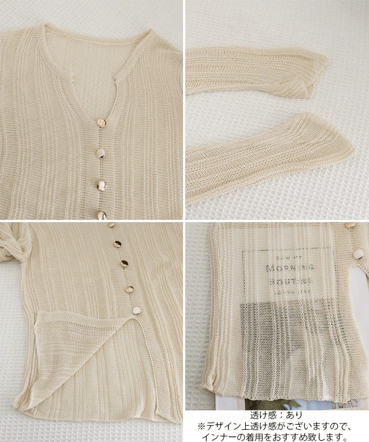 ※デザイン上透け感がございますので、インナーの着用をおすすめ致します。